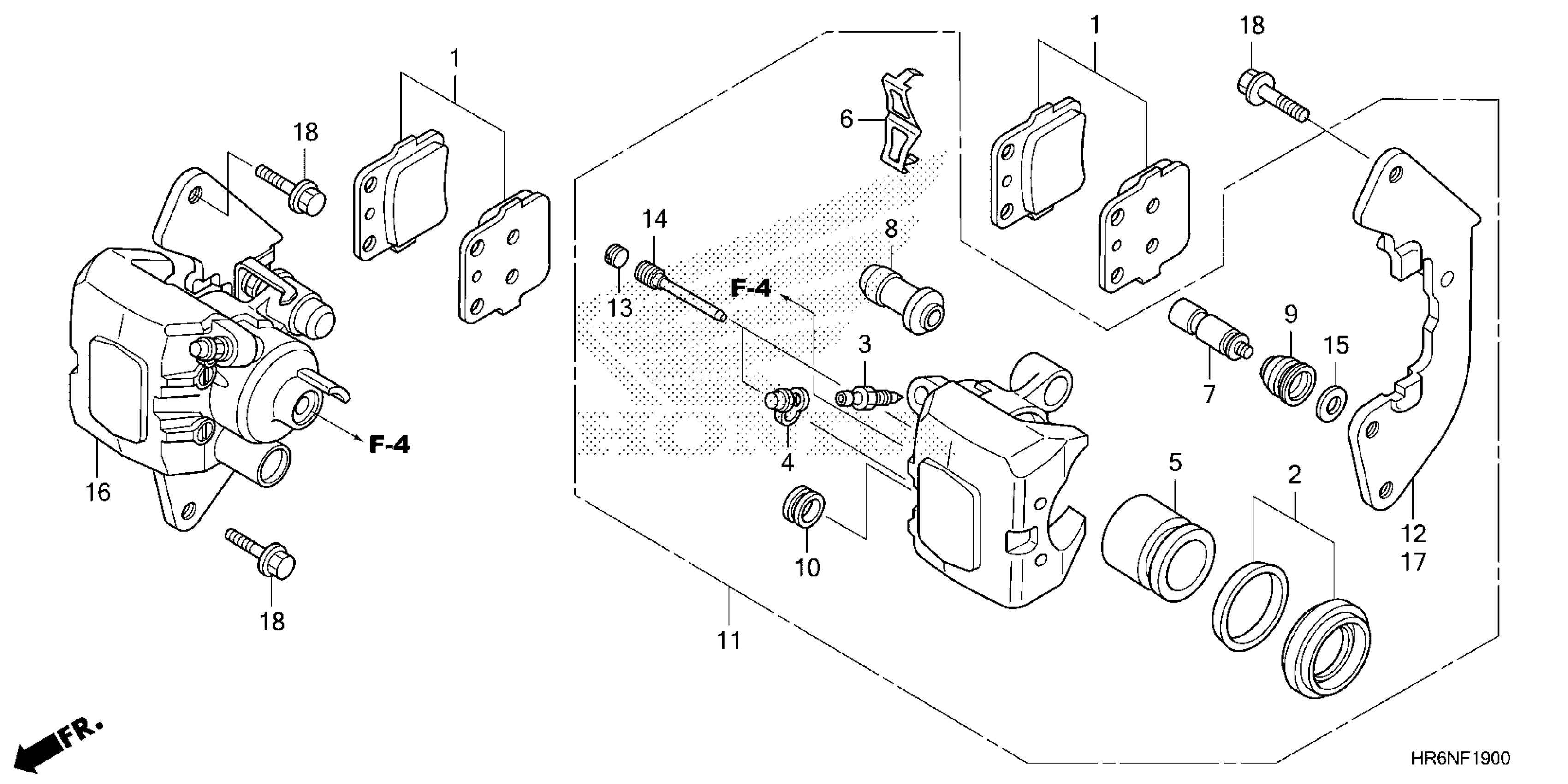 Honda TRX520FA5A (22) ALL-TERRAIN VEHICLE (ATV), USA, VIN# 1HFTE46E-N4700001 TO 1HFTE46E-N4799999 FRONT BRAKE CALIPER Diagram