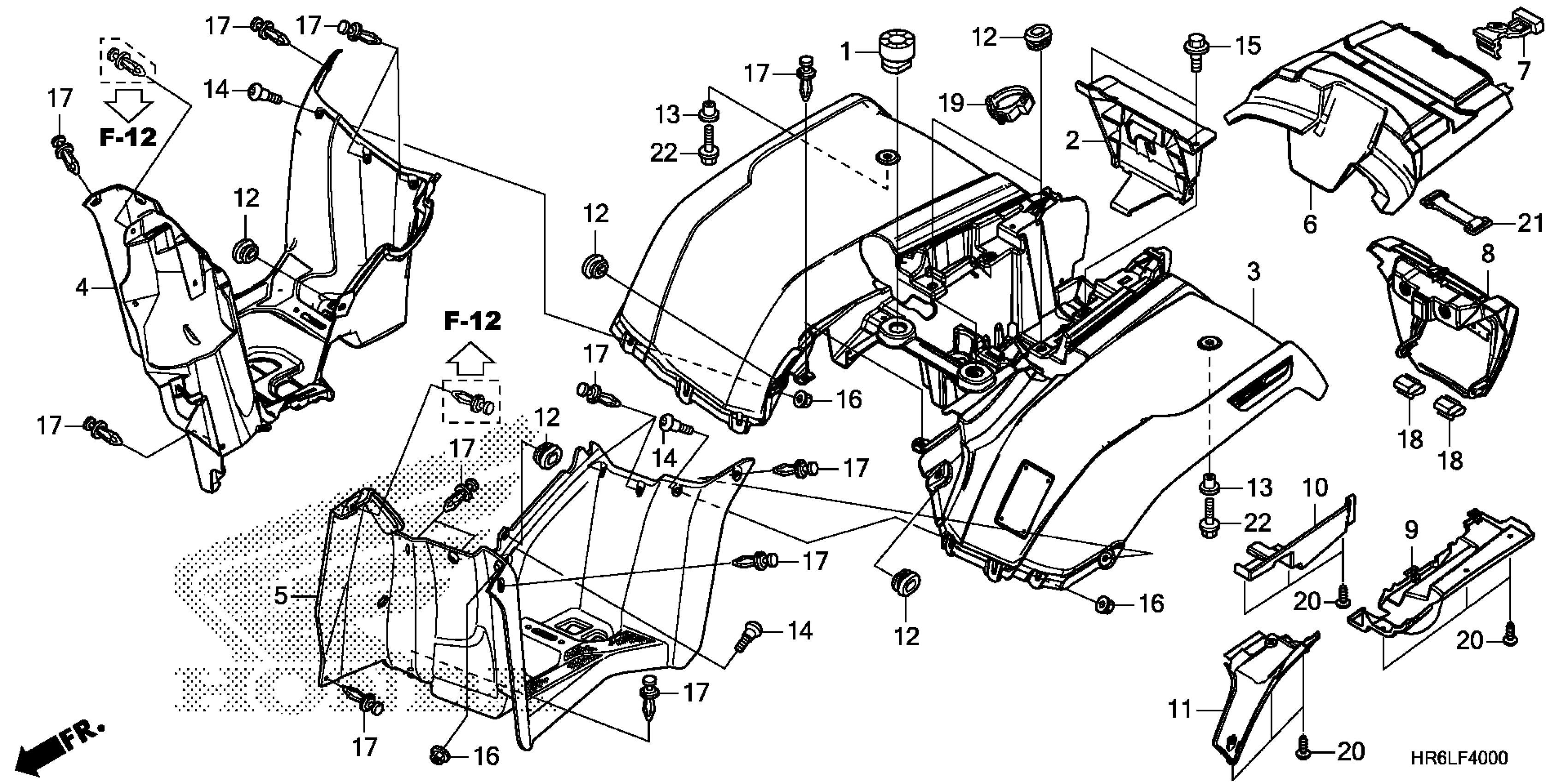Honda TRX520FA72A (20) ALL-TERRAIN VEHICLE (ATV), USA, VIN# 1HFTE46H-L4500001 TO 1HFTE46H-L4549999 REAR FENDER Diagram