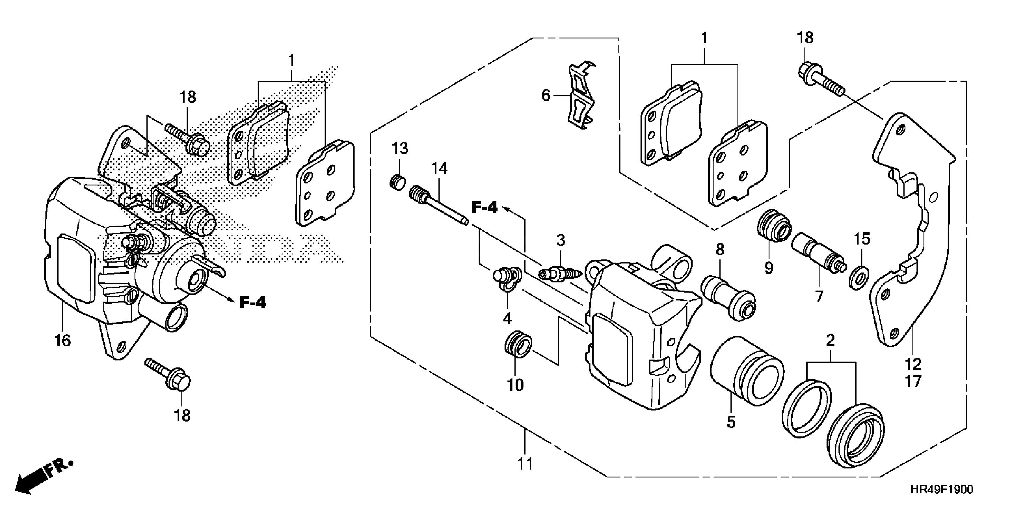 Honda TRX520FE22A (21) ALL-TERRAIN VEHICLE (ATV), USA, VIN# 1HFTE447-M4700001 FRONT BRAKE CALIPER Diagram