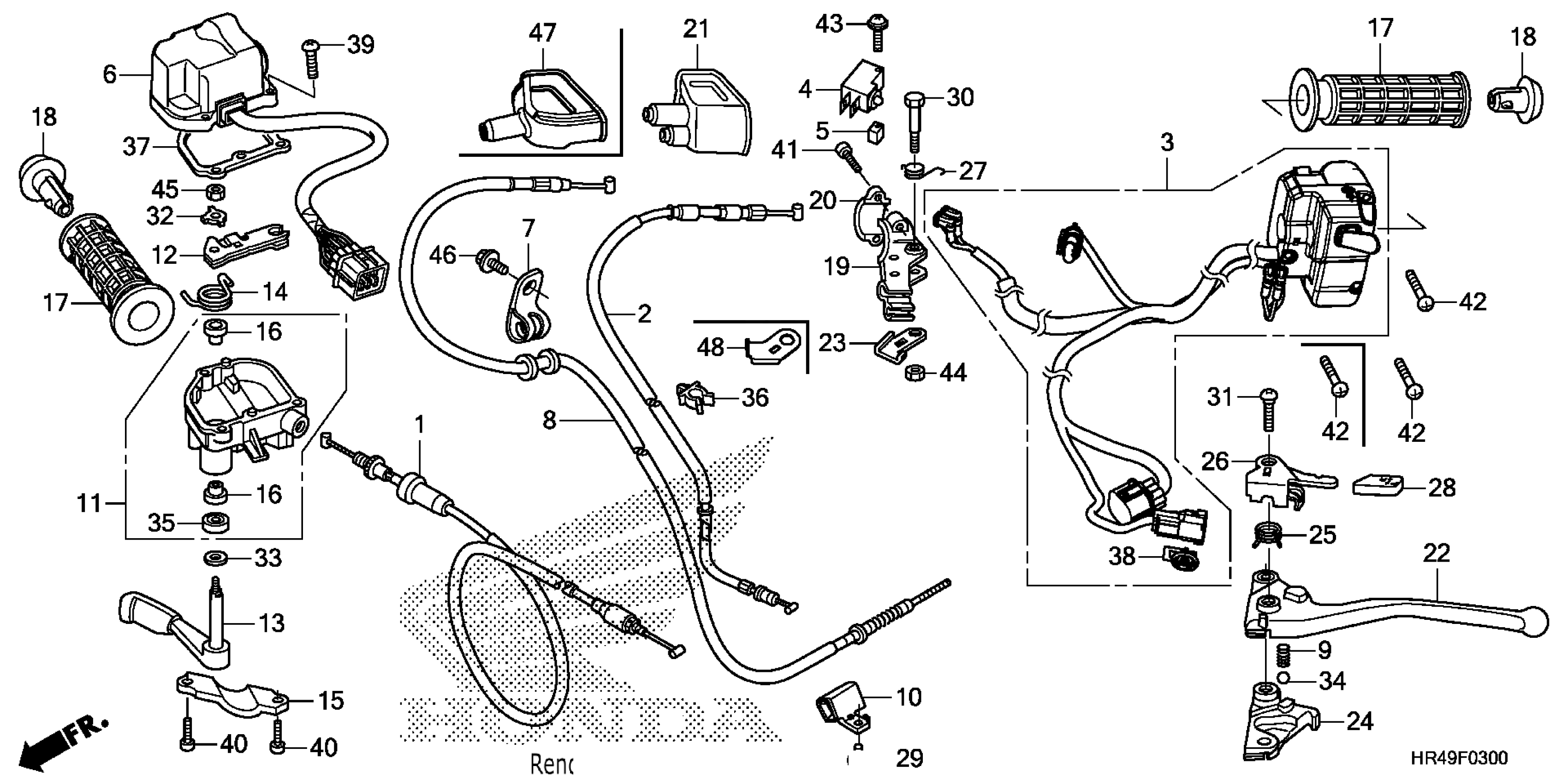 Honda TRX520FM1AC (21) ALL-TERRAIN VEHICLE (ATV), USA, VIN# 1HFTE440-M4700001 HANDLE LEVER@SWITCH@CABLE Diagram