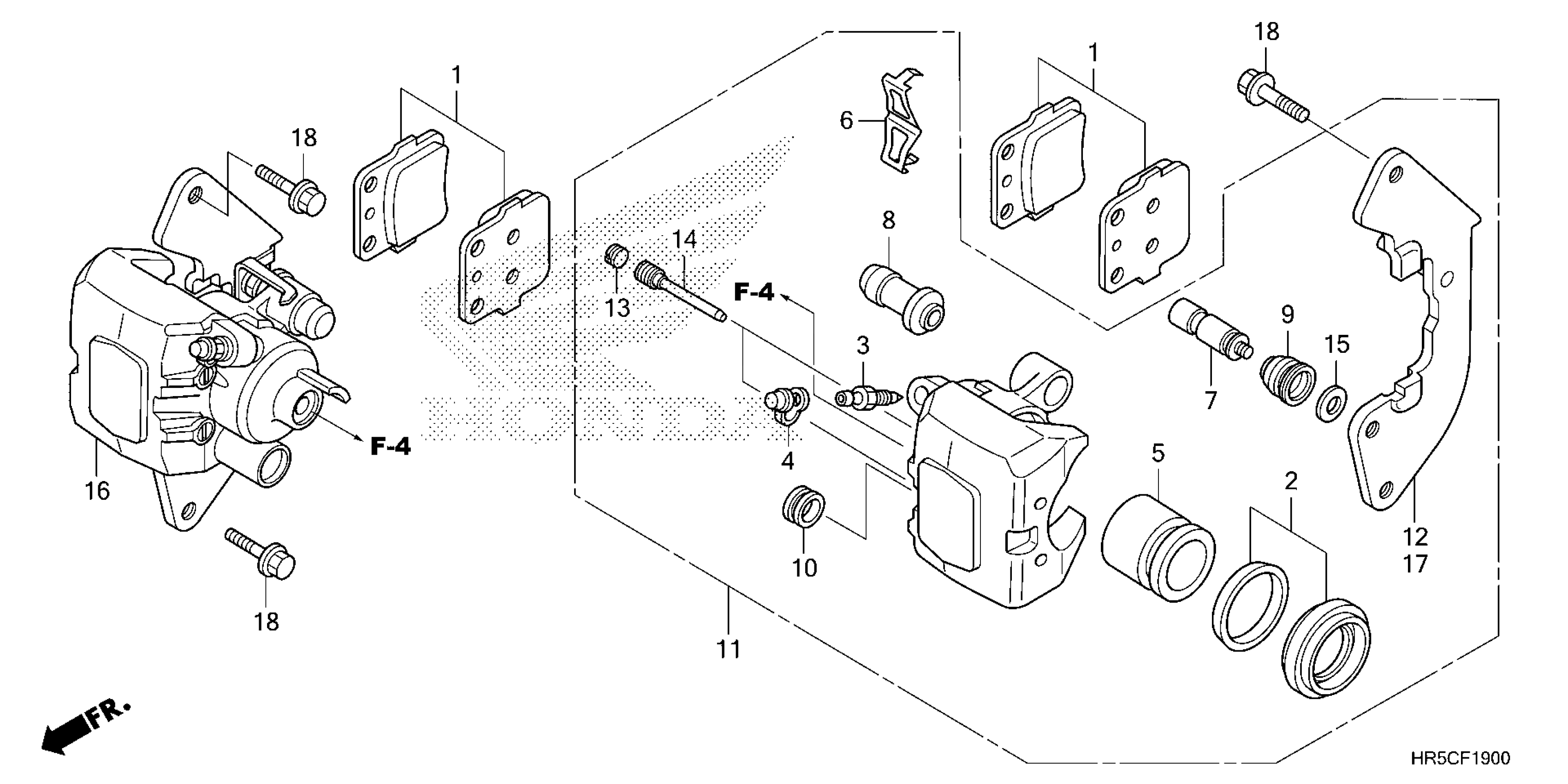 Honda TRX520FM62A (24) ALL-TERRAIN VEHICLE (ATV), USA, VIN# 1HFTE45E-R4900001 TO 1HFTE45E-R4999999 FRONT BRAKE CALIPER Diagram