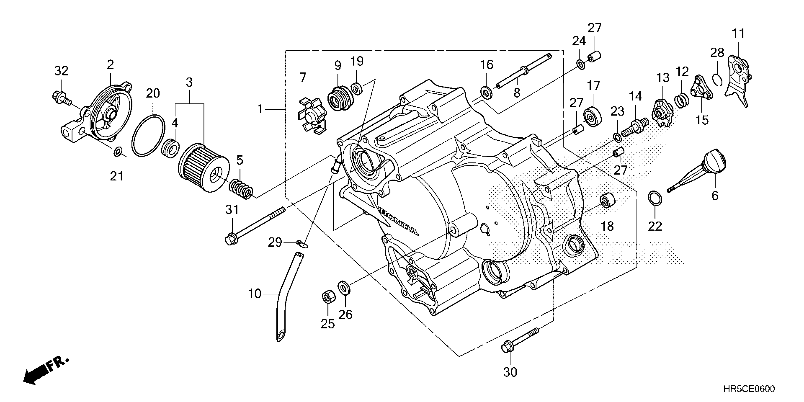 Honda TRX520FM62A (24) ALL-TERRAIN VEHICLE (ATV), USA, VIN# 1HFTE45E-R4900001 TO 1HFTE45E-R4999999 FRONT CRANKCASE COVER Diagram