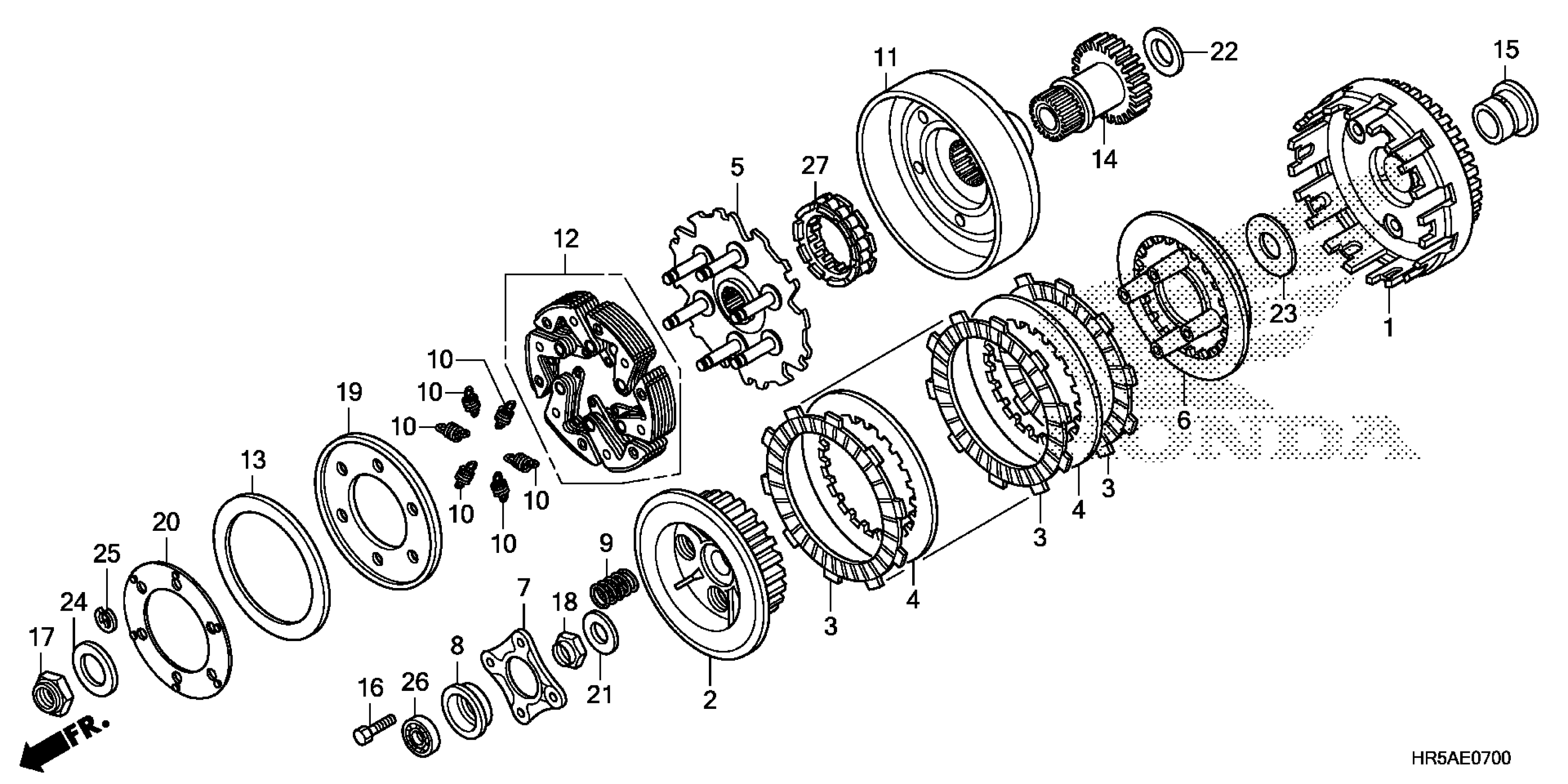 Honda TRX520FM62AC (23) ALL-TERRAIN VEHICLE (ATV), USA, VIN# 1HFTE451-P4800001 CLUTCH Diagram