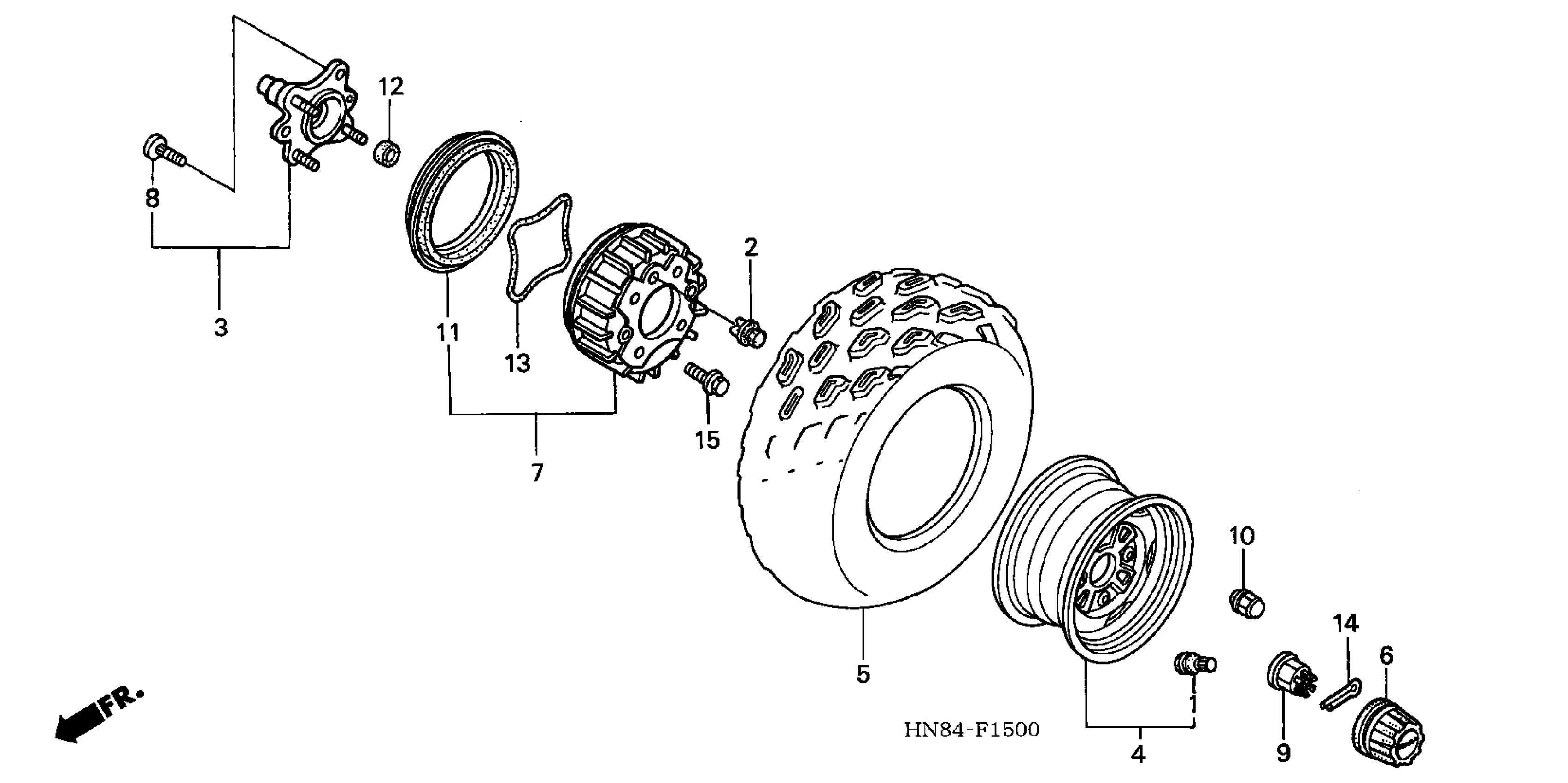Honda TRX650FAA (03) RINCON, USA, VIN# 478TE280-3A000001 TO 478TE280-3A099999 FRONT WHEEL Diagram