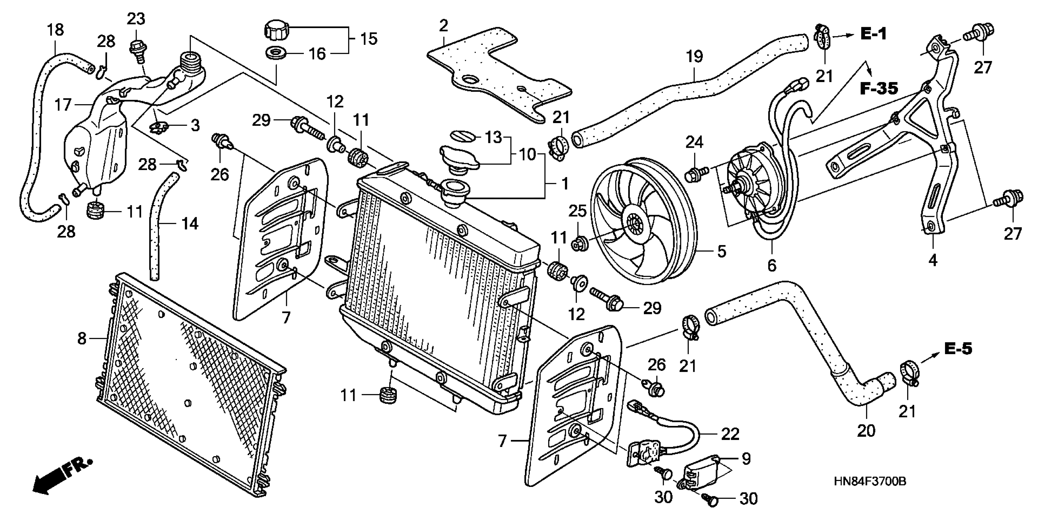 Honda TRX650FAA (05) FOURTRAX RINCON, USA, VIN# 1HFTE280-54000001 RADIATOR Diagram