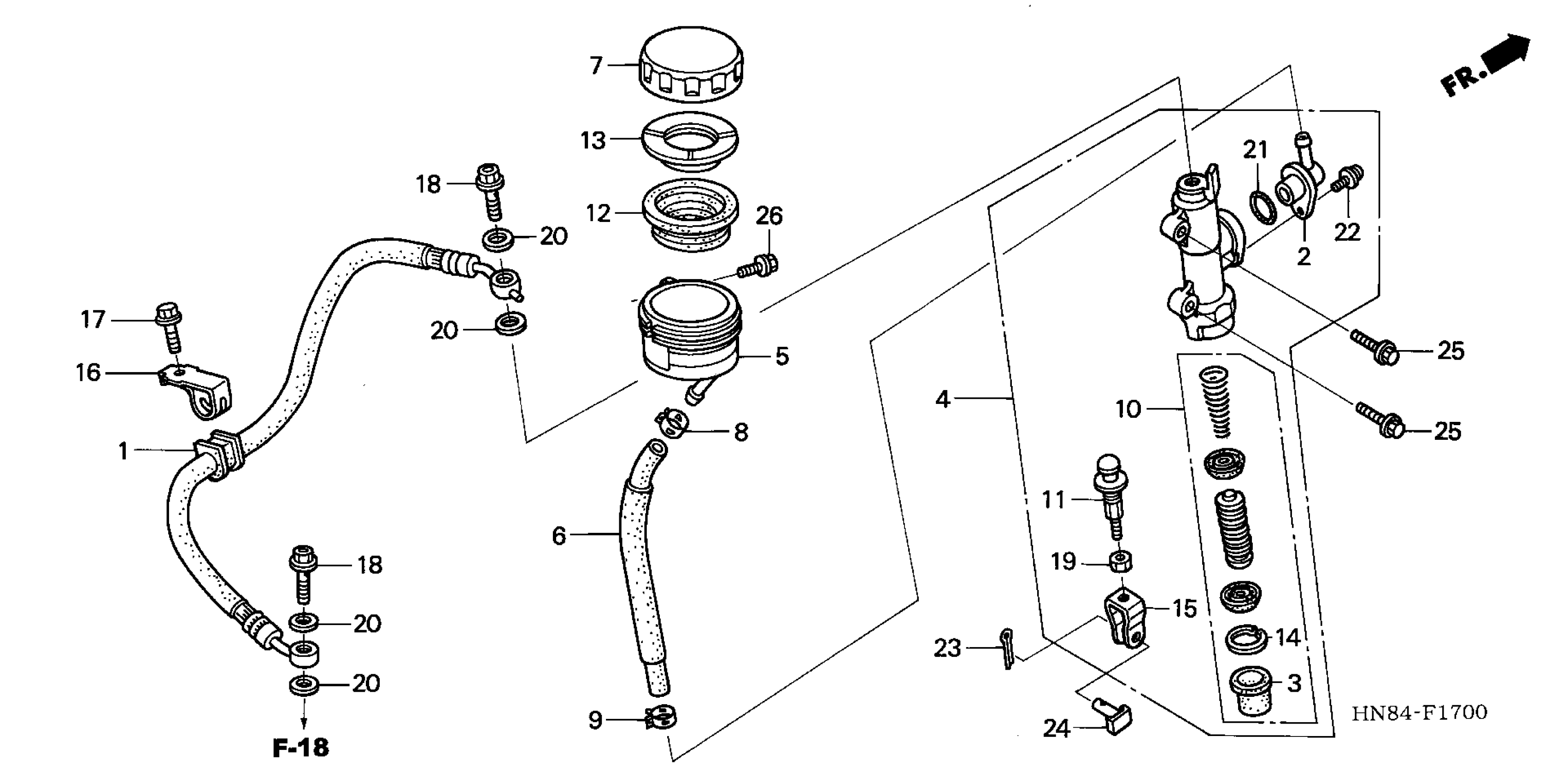 Honda TRX650FAA (05) FOURTRAX RINCON, USA, VIN# 1HFTE280-54000001 REAR BRAKE MASTER CYLINDER Diagram