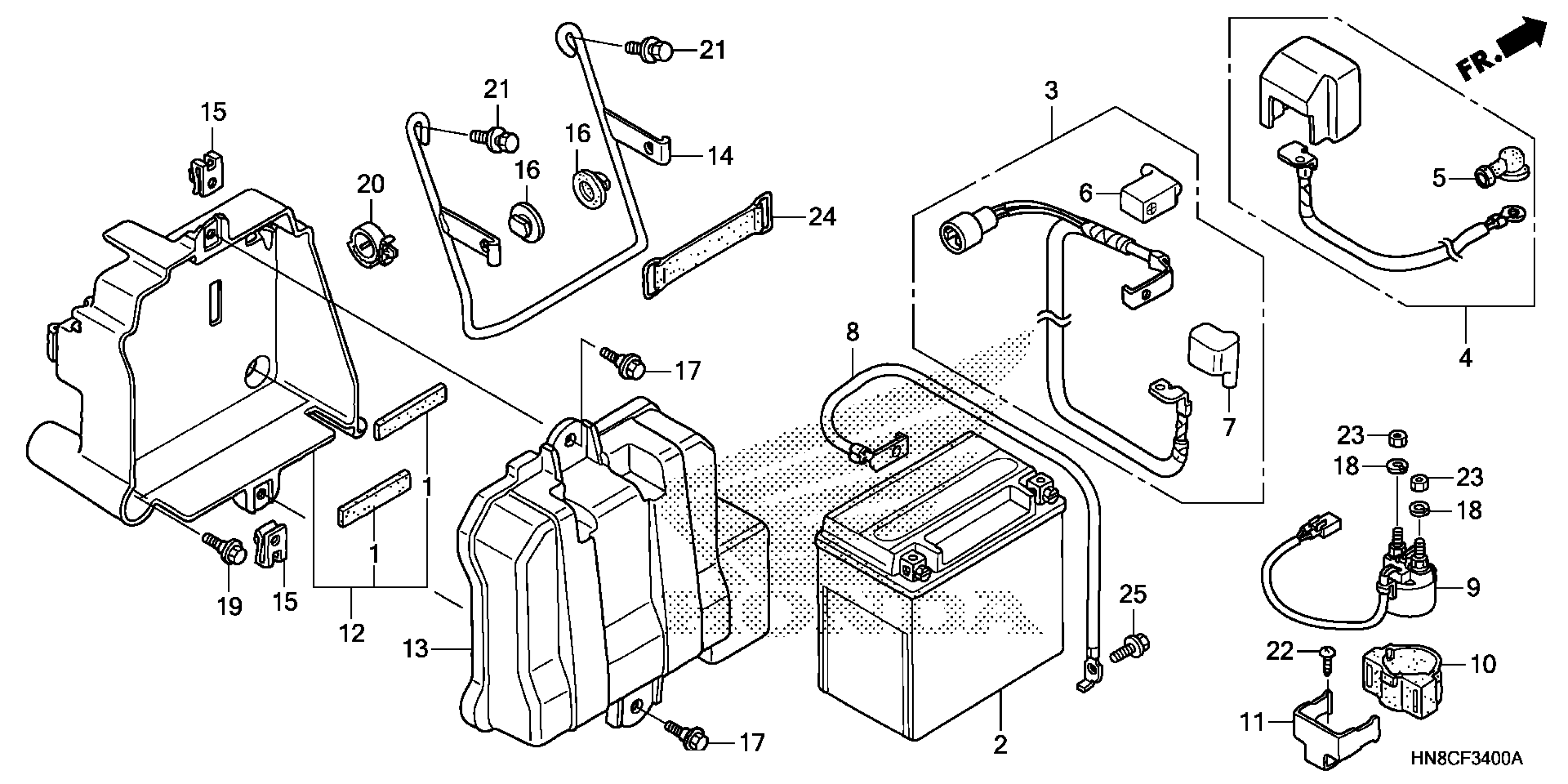 Honda TRX680FA5A (23) ALL-TERRAIN VEHICLE (ATV), USA, VIN# 1HFTE331-P4800001 BATTERY Diagram