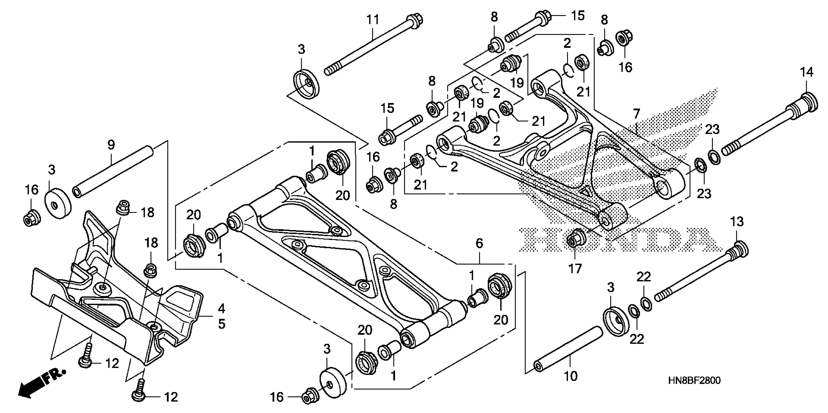 Honda TRX680FAAC (14) FOURTRAX RINCON, USA, VIN# 1HFTE330-E4900001 TO 1HFTE330-E4999999 REAR ARM (1) Diagram