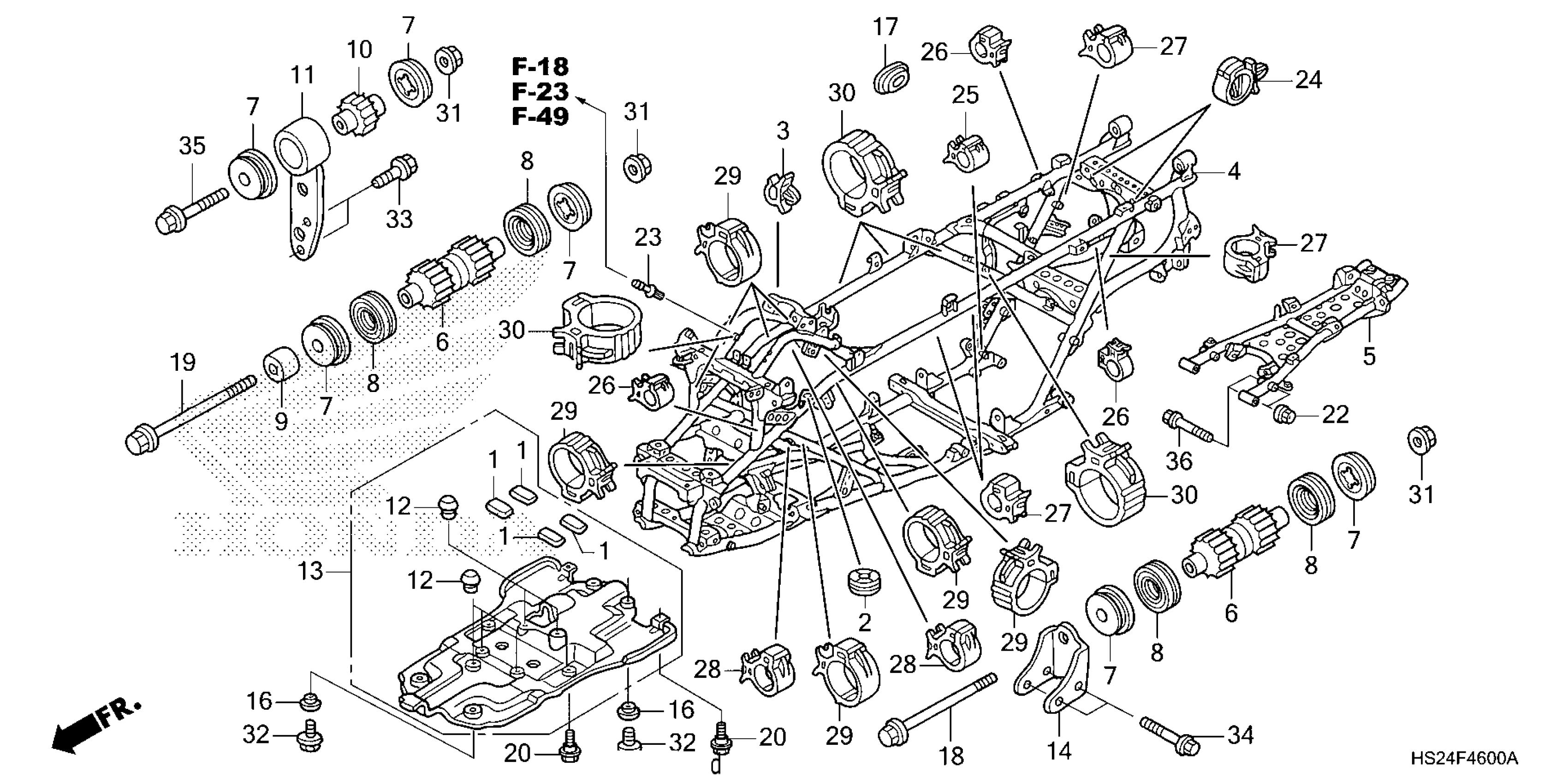 Honda TRX700FA5A (24) ALL-TERRAIN VEHICLE (ATV), USA, VIN# 1HFTE331-R4900001 TO 1HFTE331-R4999999 FRAME Diagram