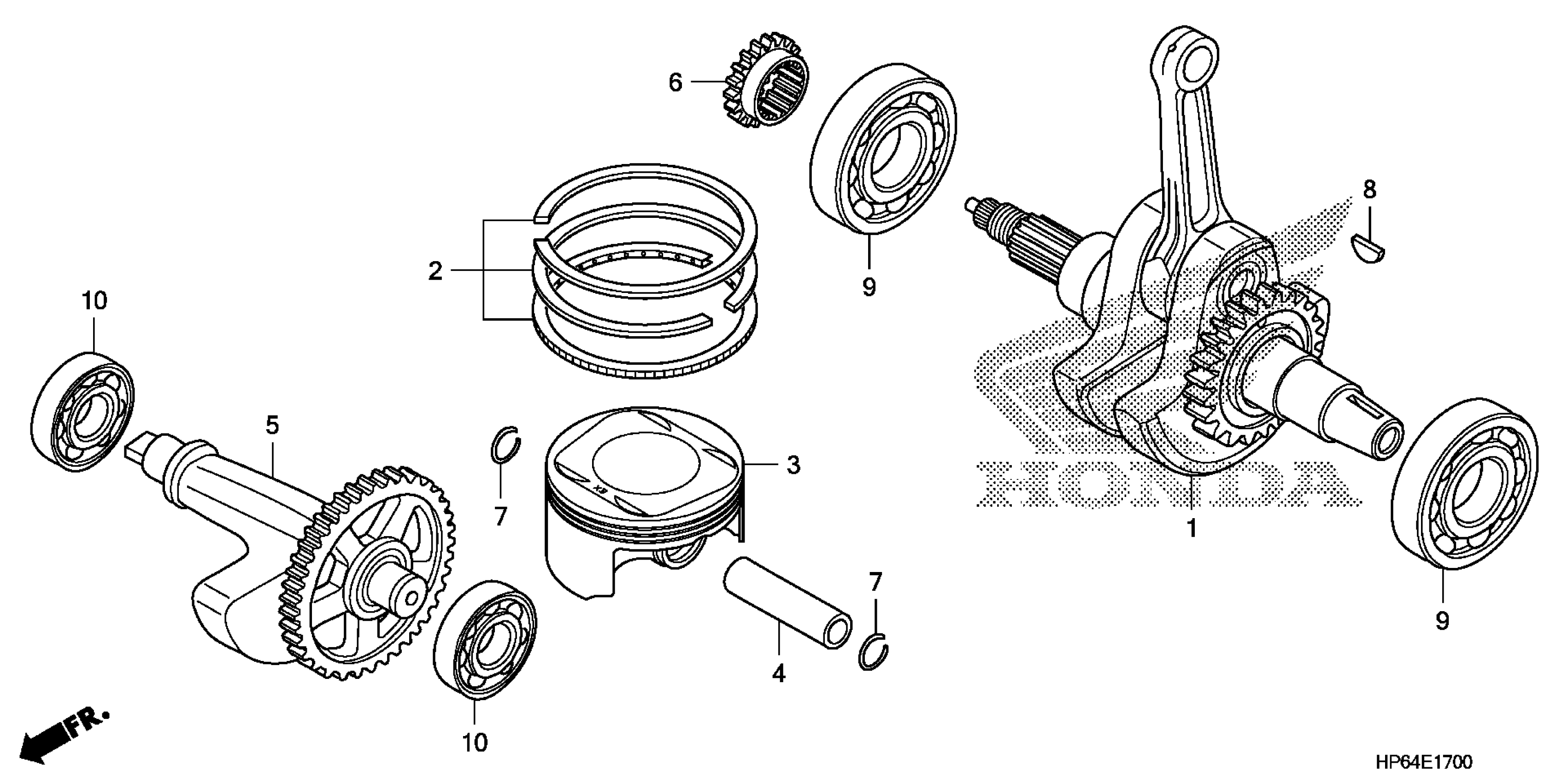Honda TRX700XXA (09) TRX700XX, JPN, VIN# JH2TE360-9K100001 CRANKSHAFT@PISTON Diagram