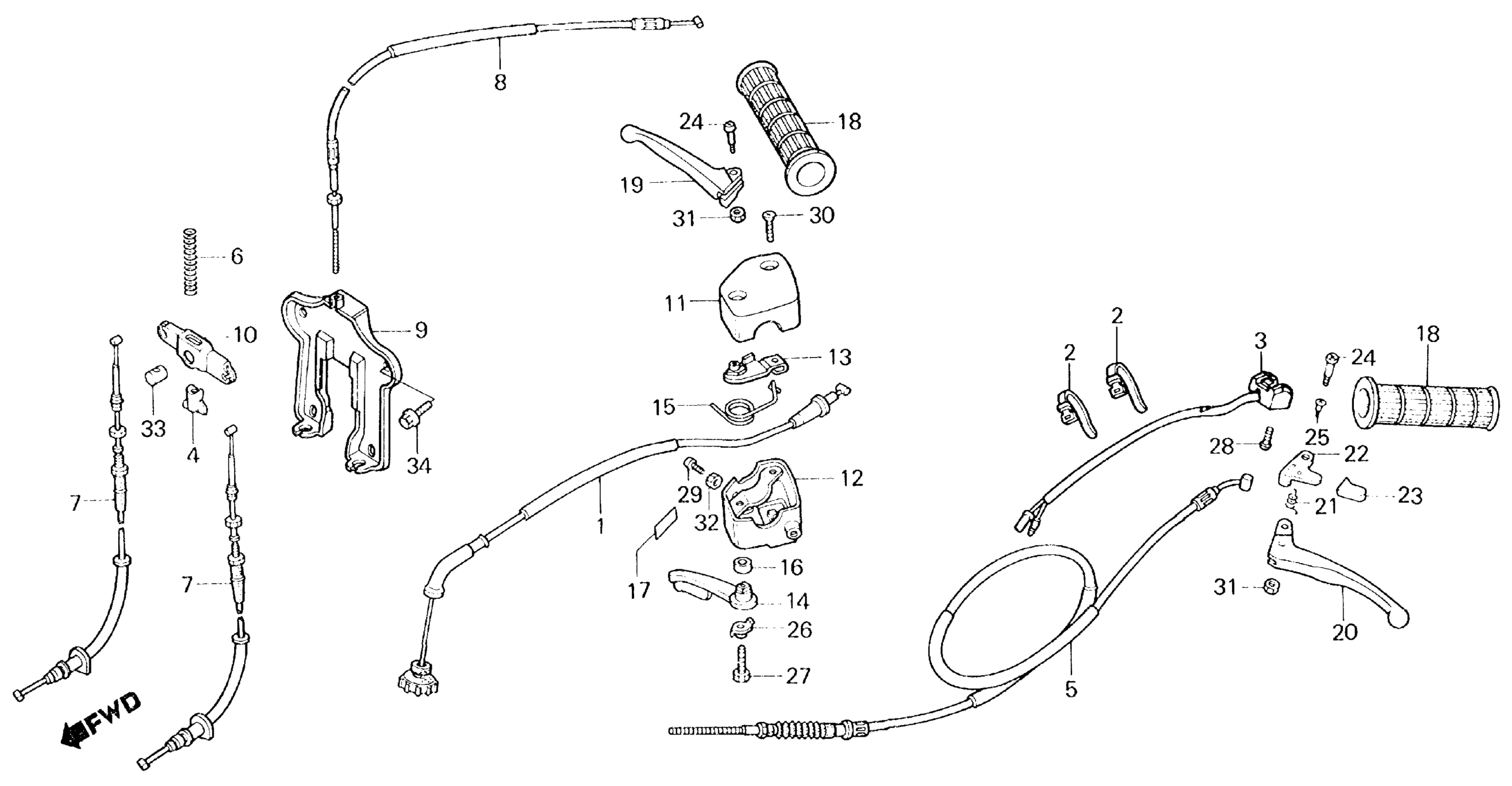 Honda TRX70A (87) FOURTRAX 70, JPN, VIN# JH3TE100-HC100012 HANDLE LEVER + SWITCH + CABLE Diagram