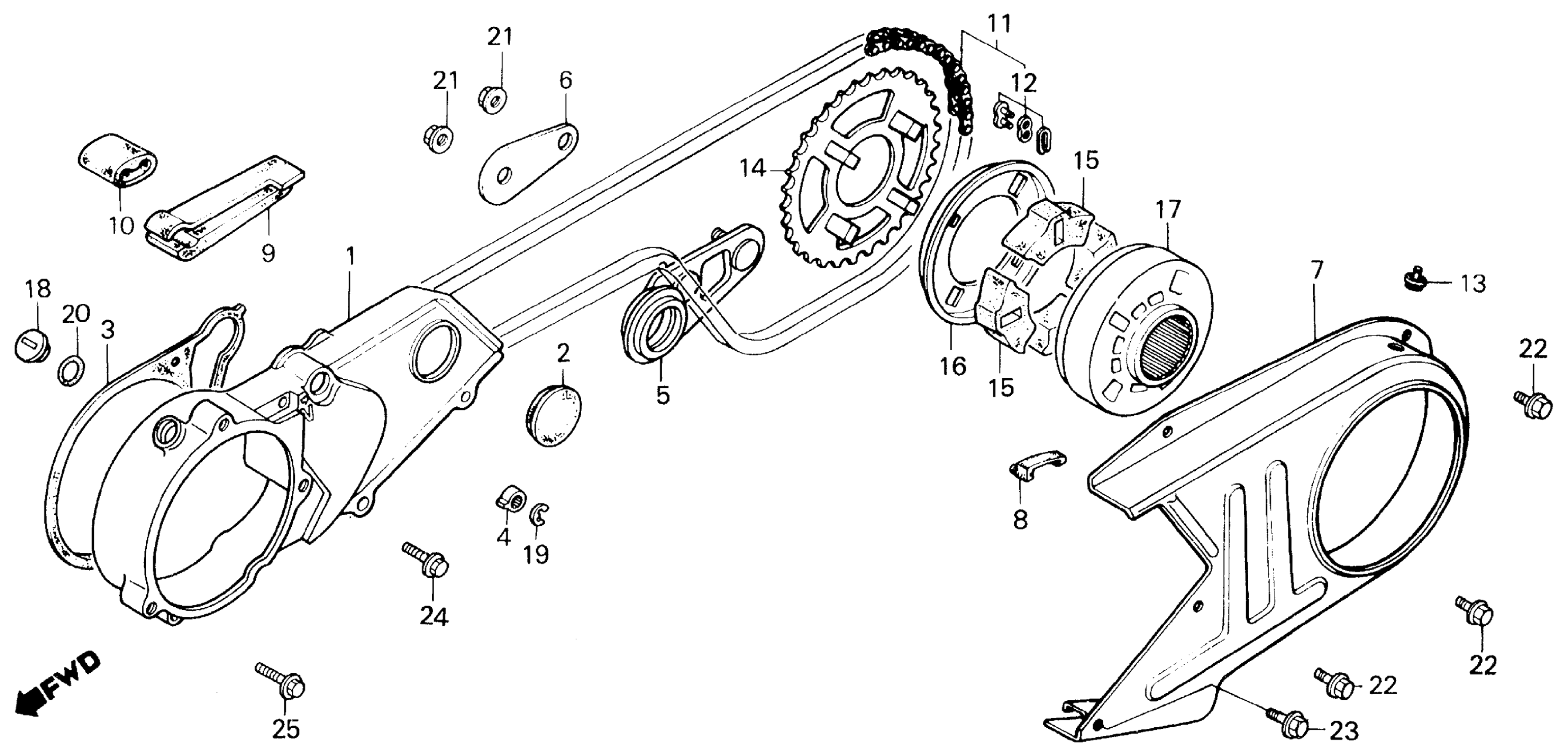 LEFT CRANKCASE COVER + CHAIN CASE