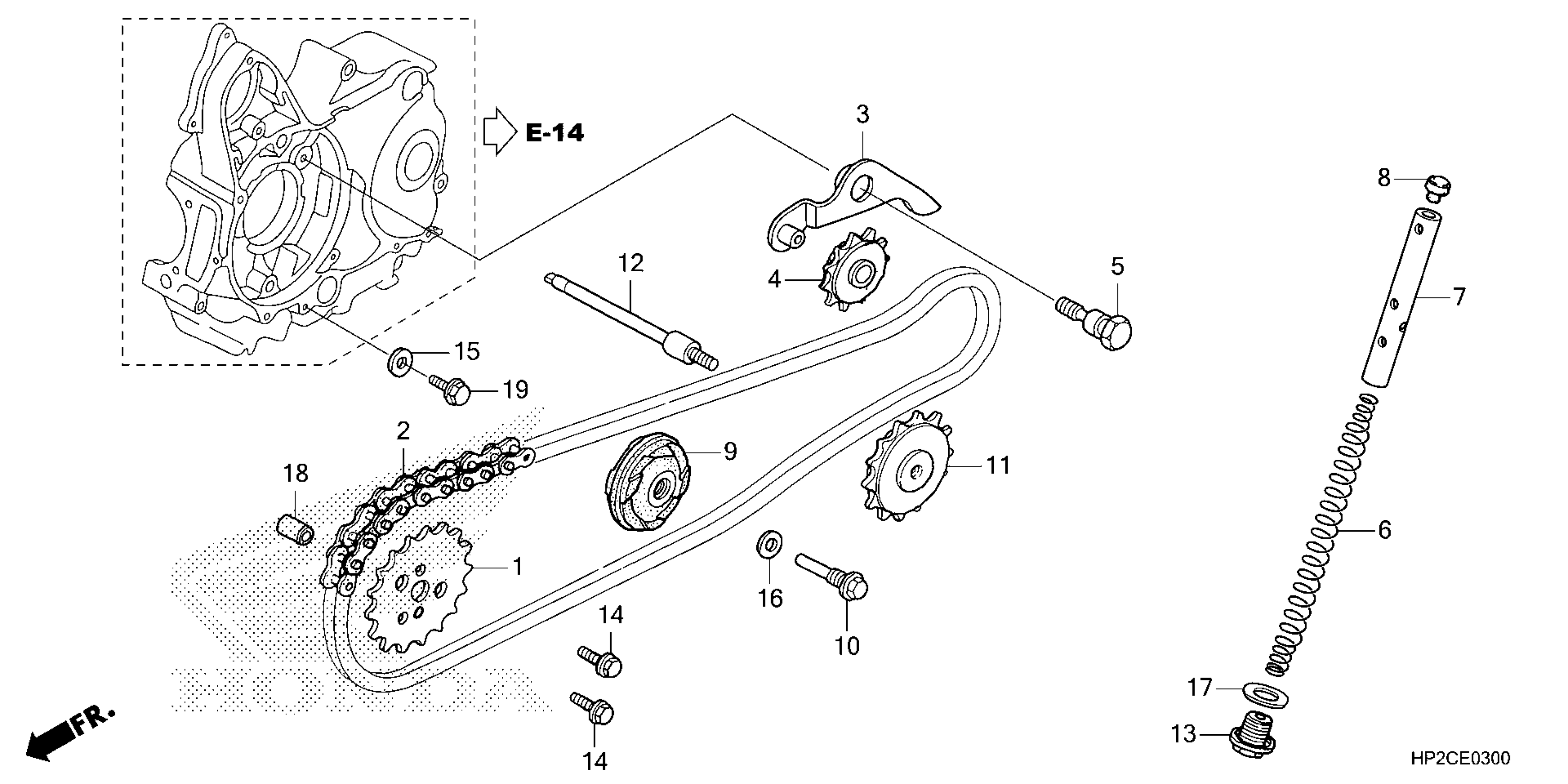 Honda TRX90X4AC (24) ALL-TERRAIN VEHICLE (ATV), USA, VIN# 1HFTE550-RJ100001 TO 1HFTE550-RJ199999 CAM CHAIN Diagram
