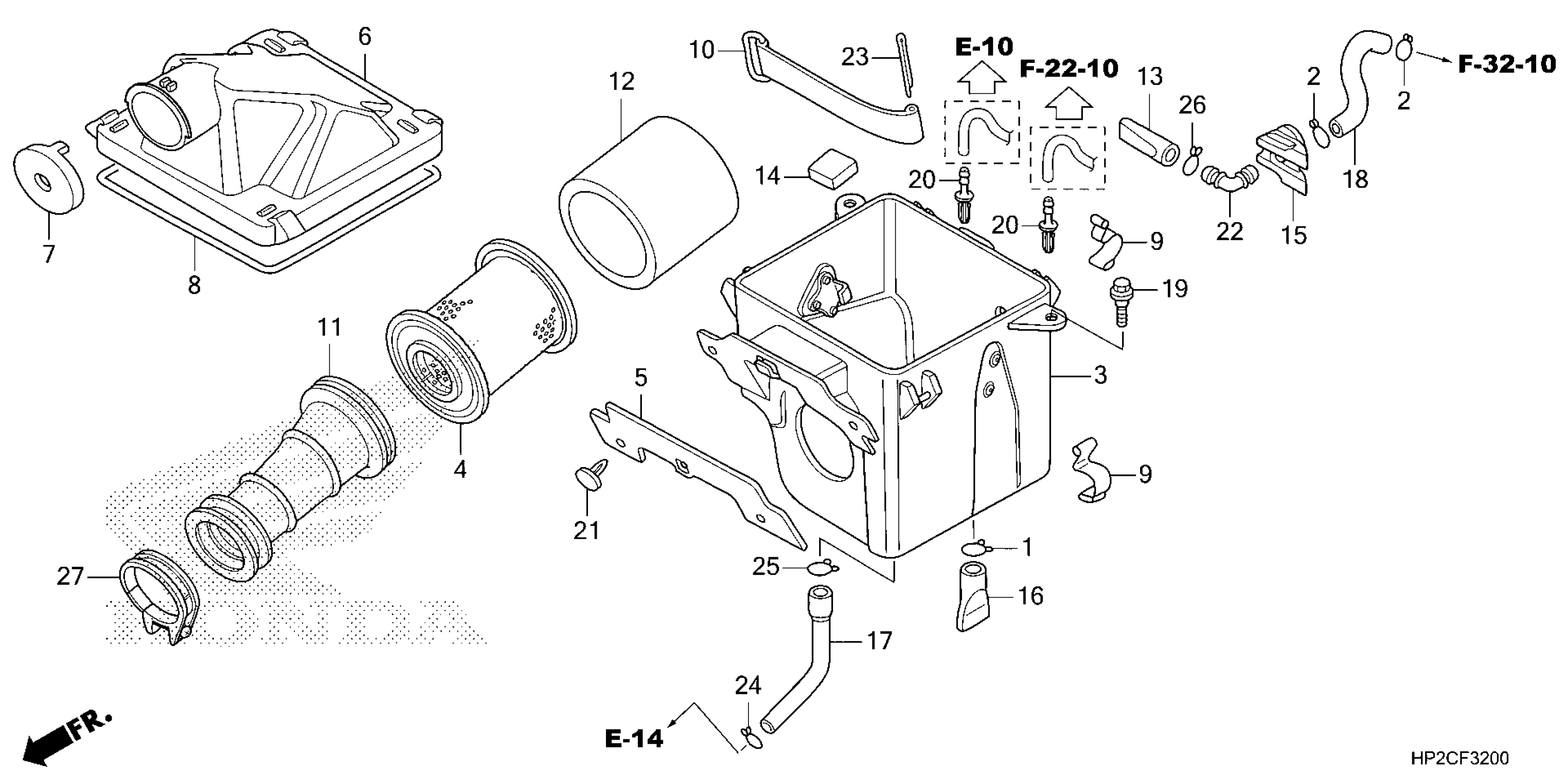 Honda TRX90XAC (25) ALL-TERRAIN VEHICLE (ATV), USA, VIN# 1HFTE550-SJ100001 TO 1HFTE550-SJ199999 AIR CLEANER Diagram