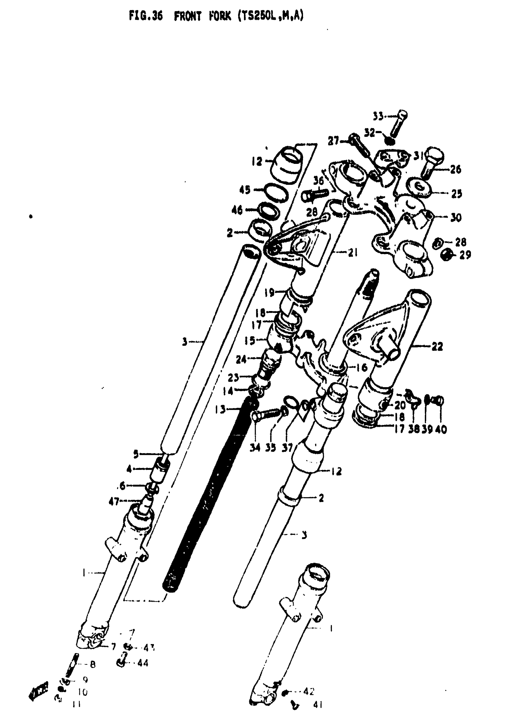 Suzuki TS250 (1976) FRONT FORK (TS250L Diagram