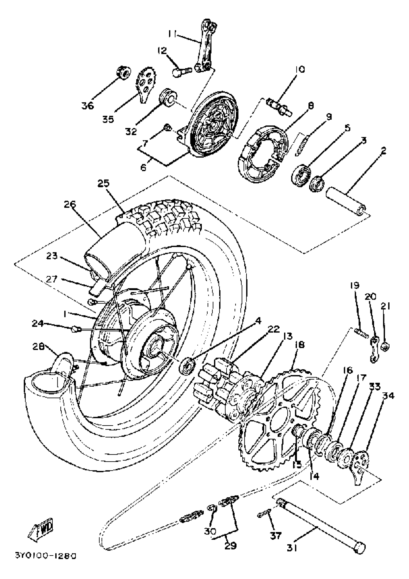 Yamaha TT250J (TT250) 1982 REAR WHEEL Diagram