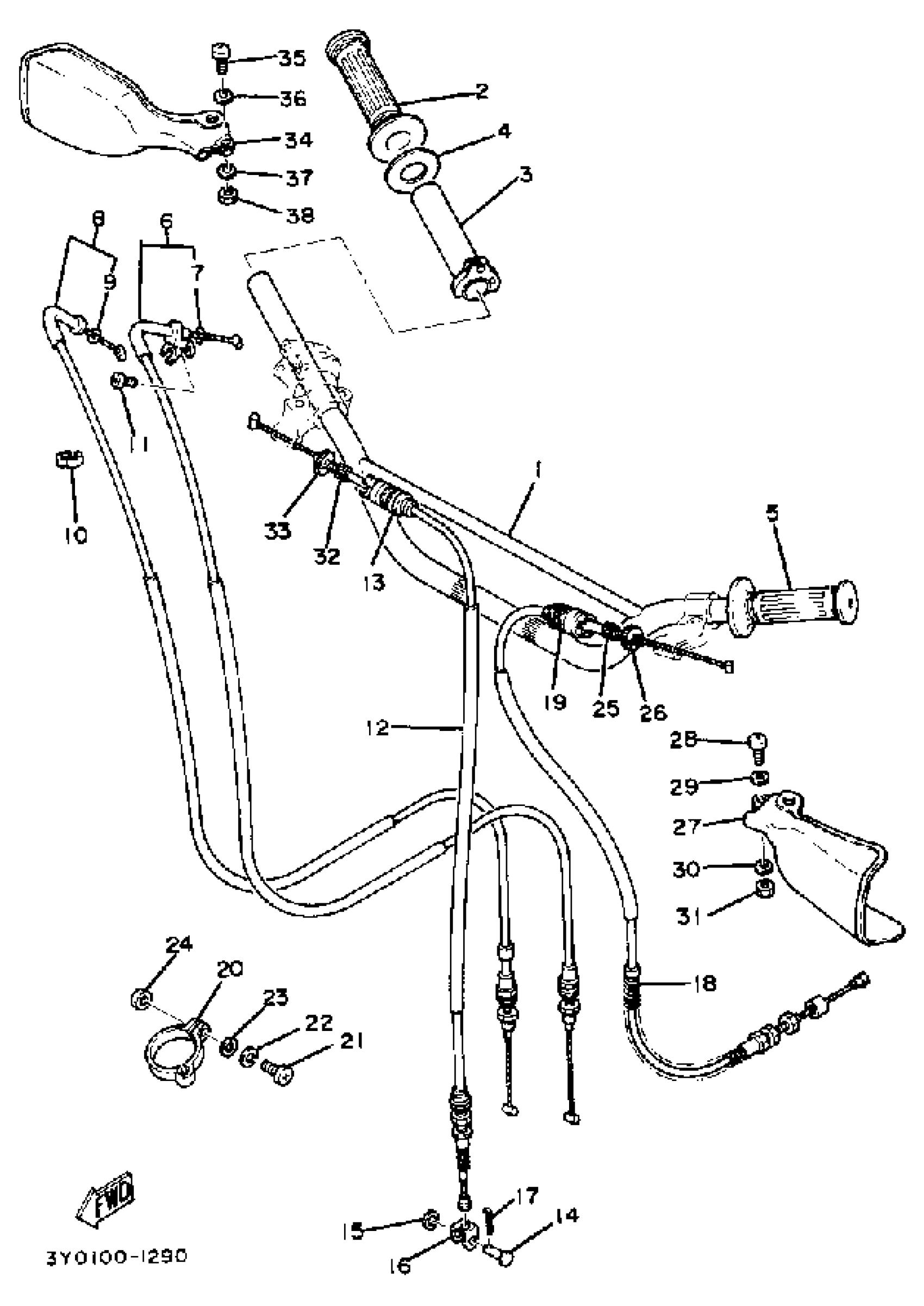 Yamaha TT250J (TT250) 1982 STEERING HANDLE - CABLE Diagram