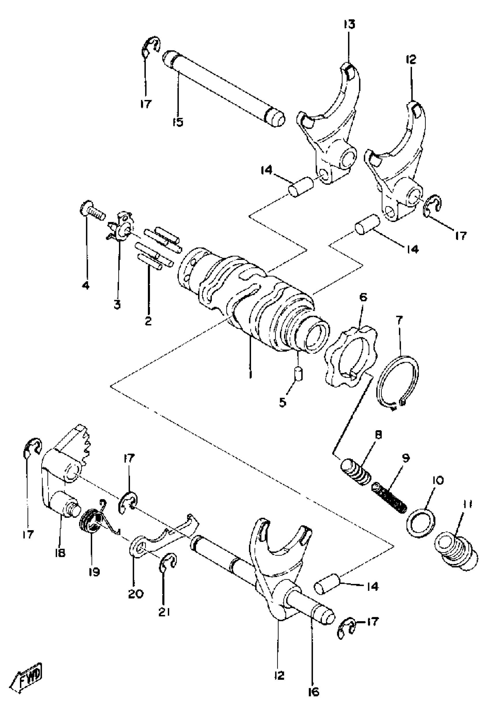Yamaha TT500C (TT500) 1976 SHIFT CAM - FORK Diagram