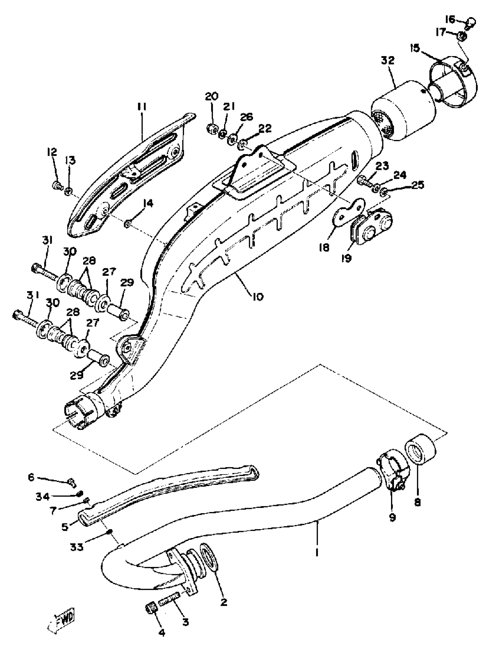 Yamaha TT500E (TT500) 1978 EXHAUST Diagram