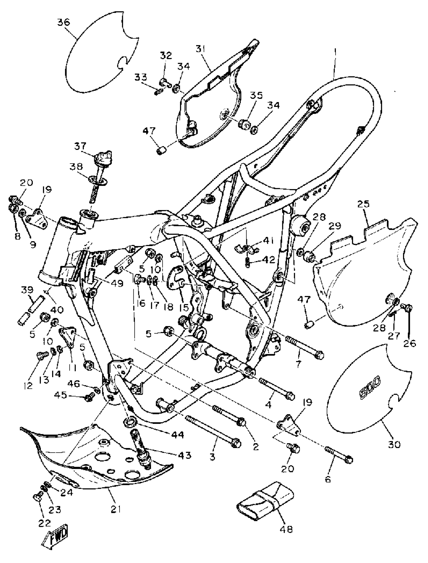 Yamaha TT500H (TT500) 1981 FRAME-SIDE COVER Diagram