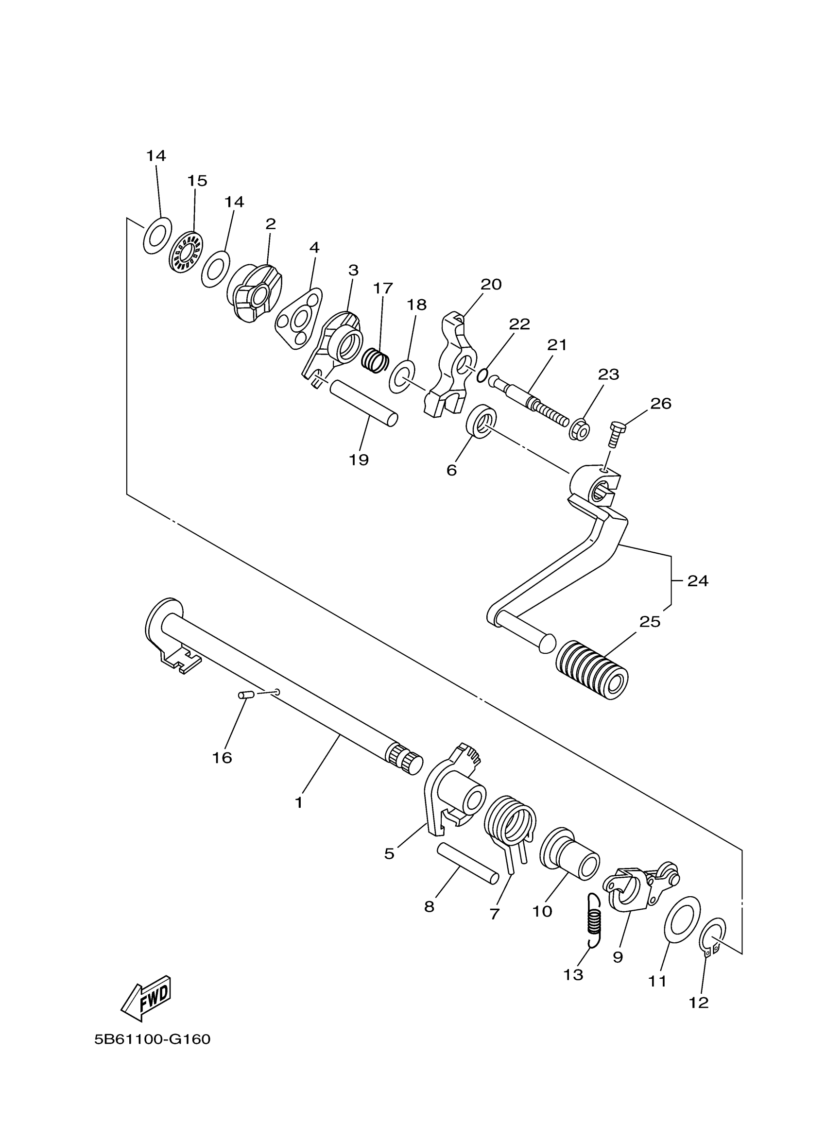 Yamaha TTR110EB (TTR110E) 5B6J 2012 SHIFT SHAFT Diagram