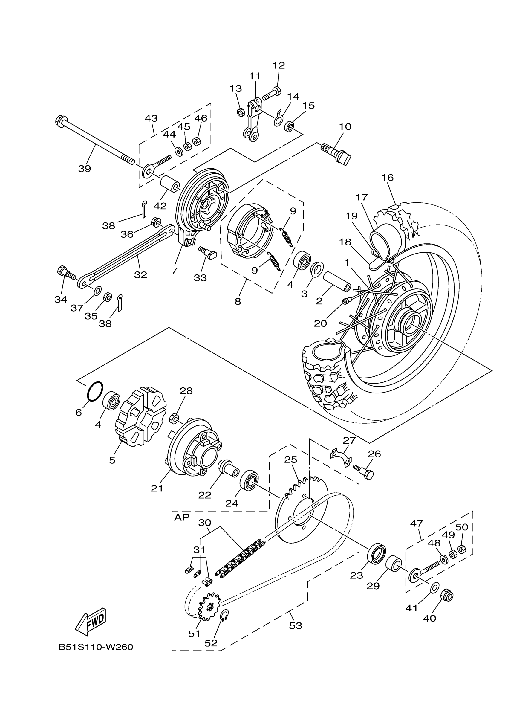 Yamaha TTR110ETC (TTR110E) BMAU 2026 REAR WHEEL Diagram