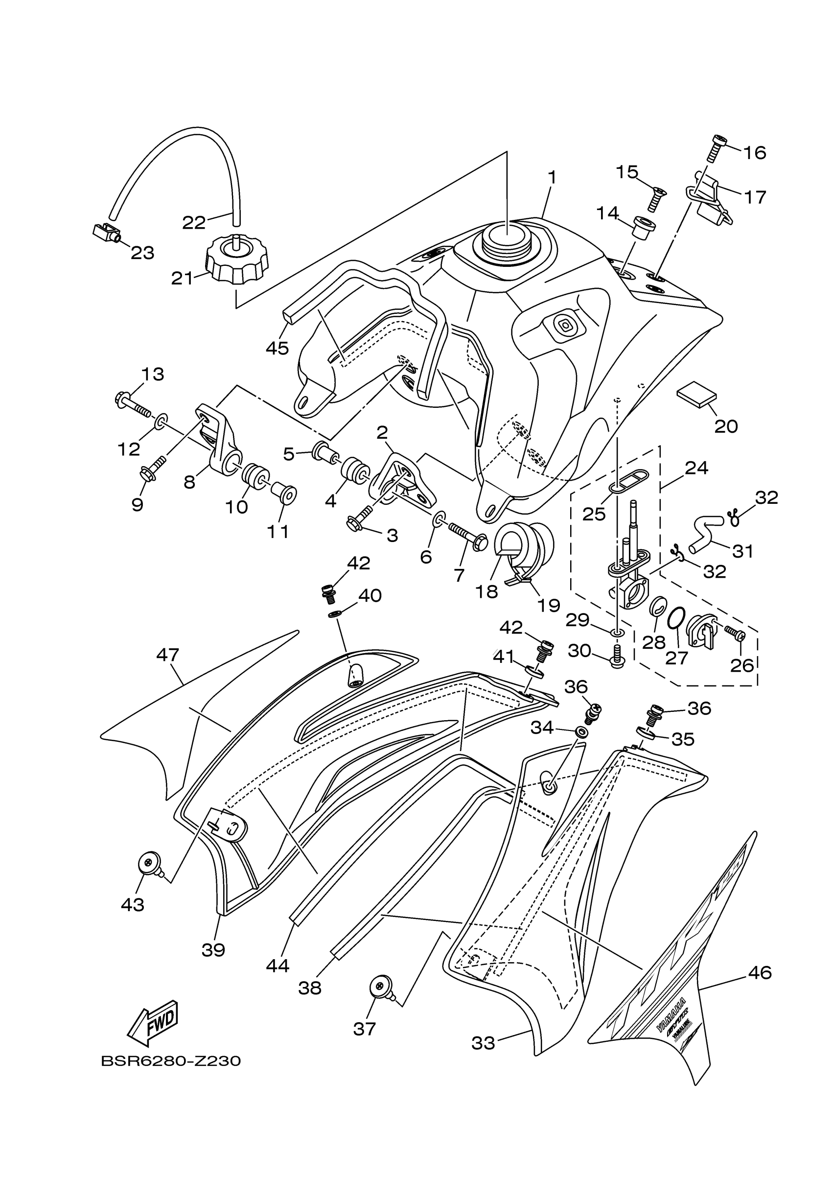 Yamaha TTR125LER1 (TTR125LE) BSR6 2024 FUEL TANK Diagram