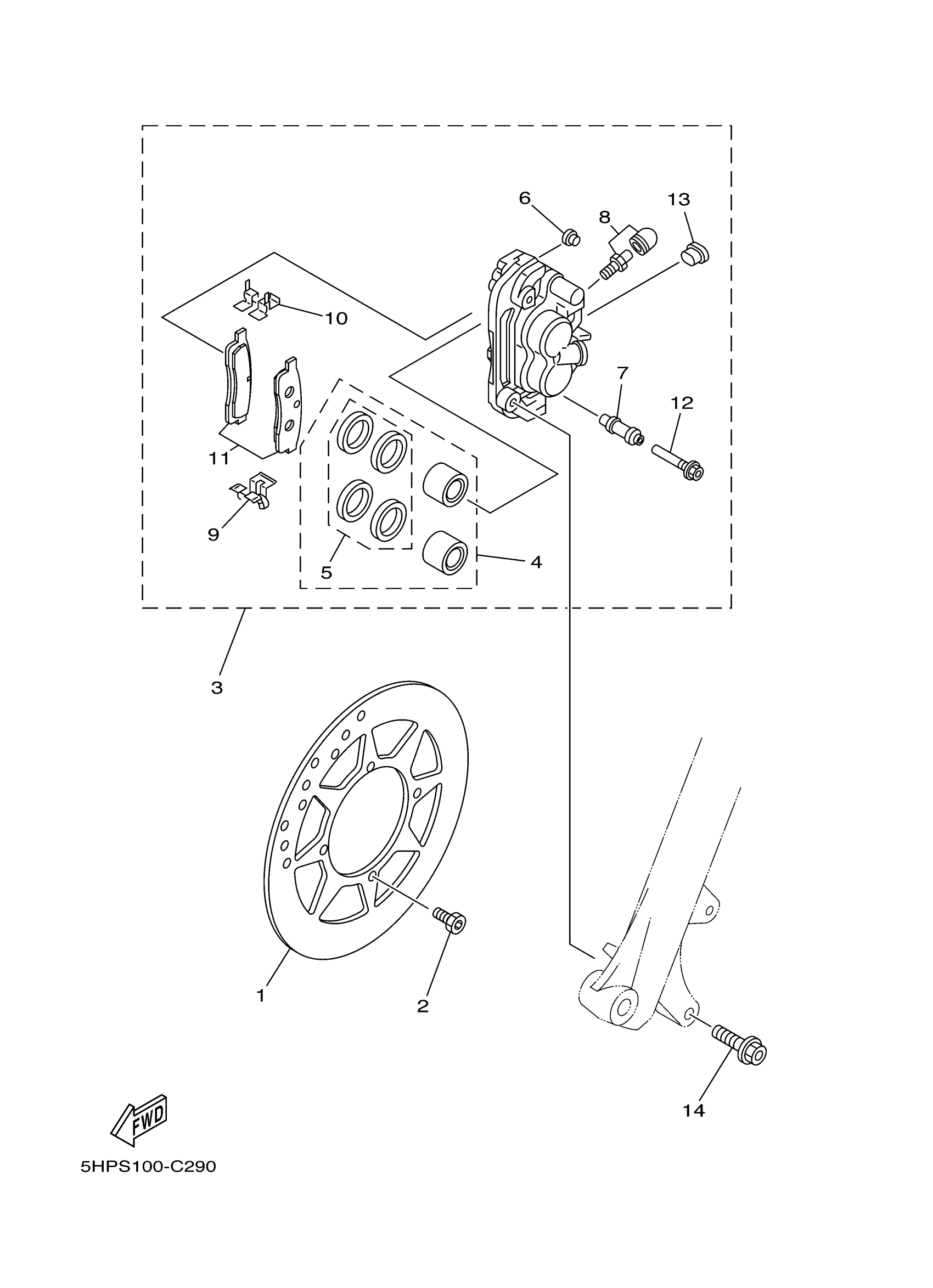 Yamaha TTR125LES (TT-R125E) 5HPW 2004 FRONT BRAKE CALIPER LES Diagram
