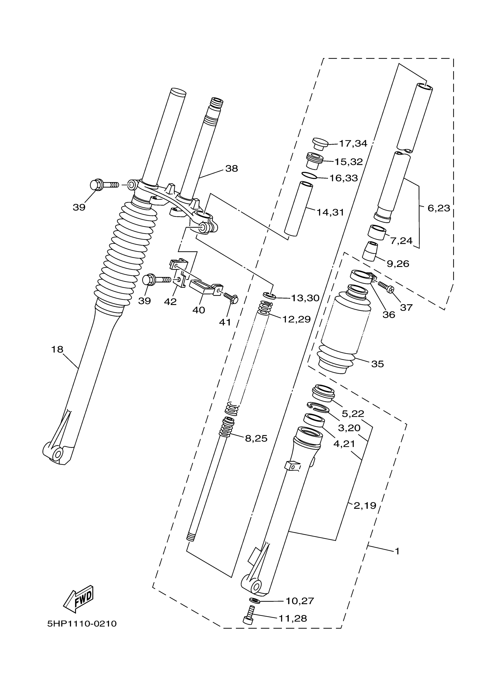 Yamaha TTR125LM (TTR125L) 5HP4 2000 FRONT FORK Diagram