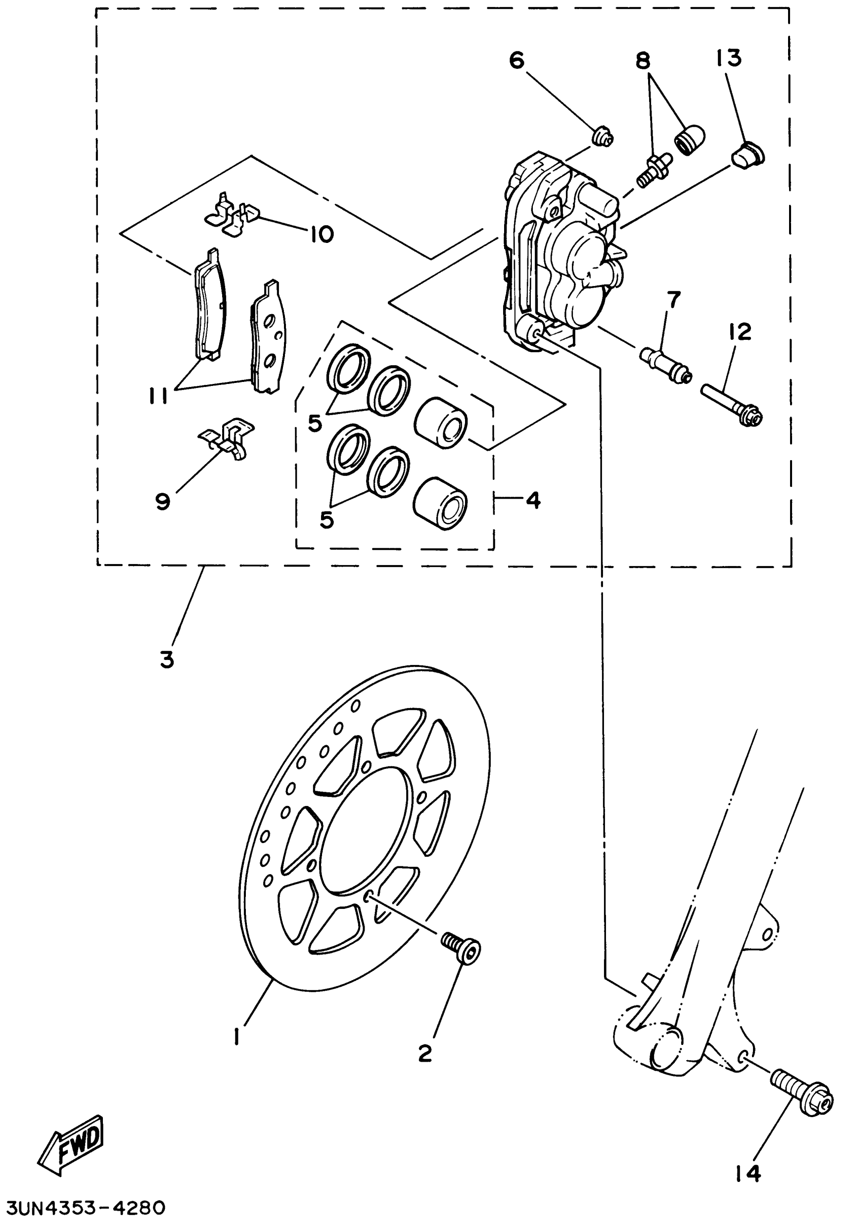 Yamaha TTR125P (TTR125) 5HPB 2002 FRONT BRAKE CALIPER Diagram