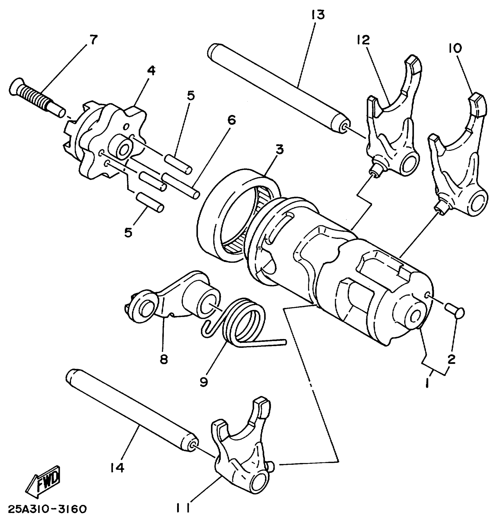 Yamaha TTR225LC (TTR225 CA) 5FG2 1999 SHIFT CAM FORK Diagram