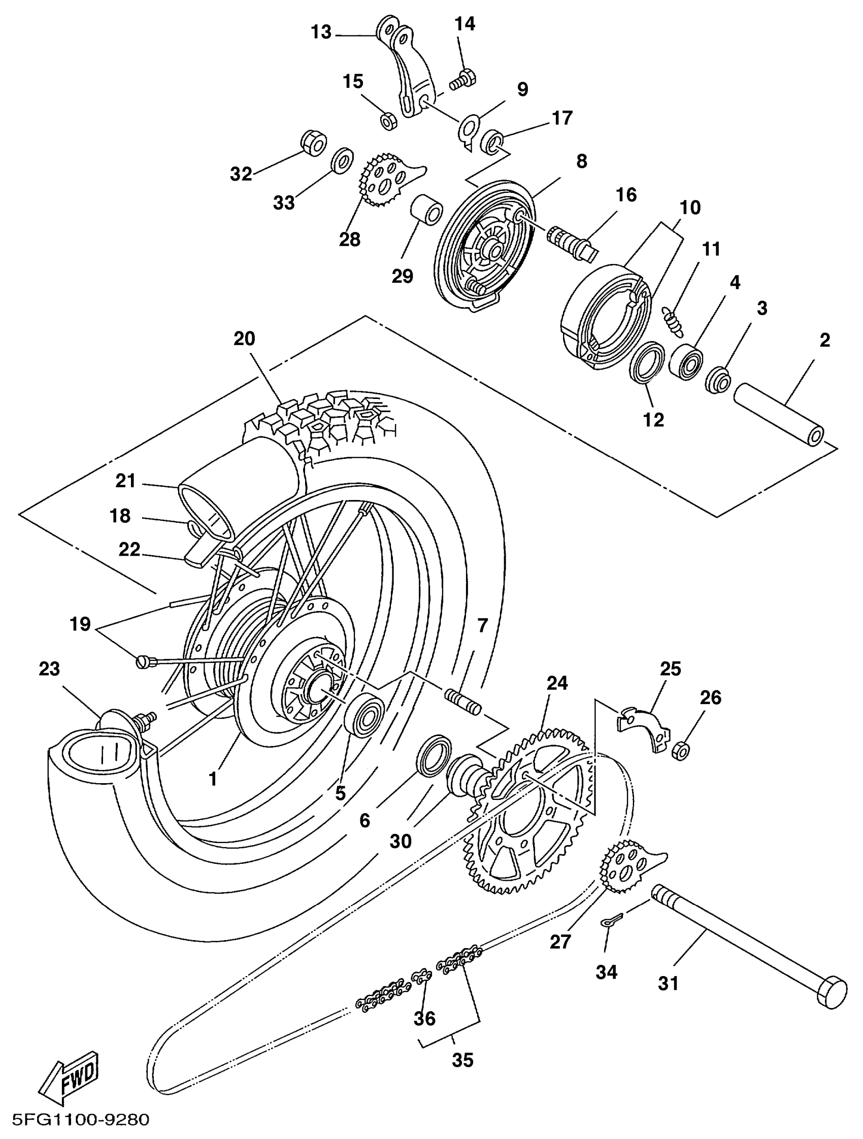 Yamaha TTR225NC (TTR225 CA) 5FG8 2001 REAR WHEEL Diagram
