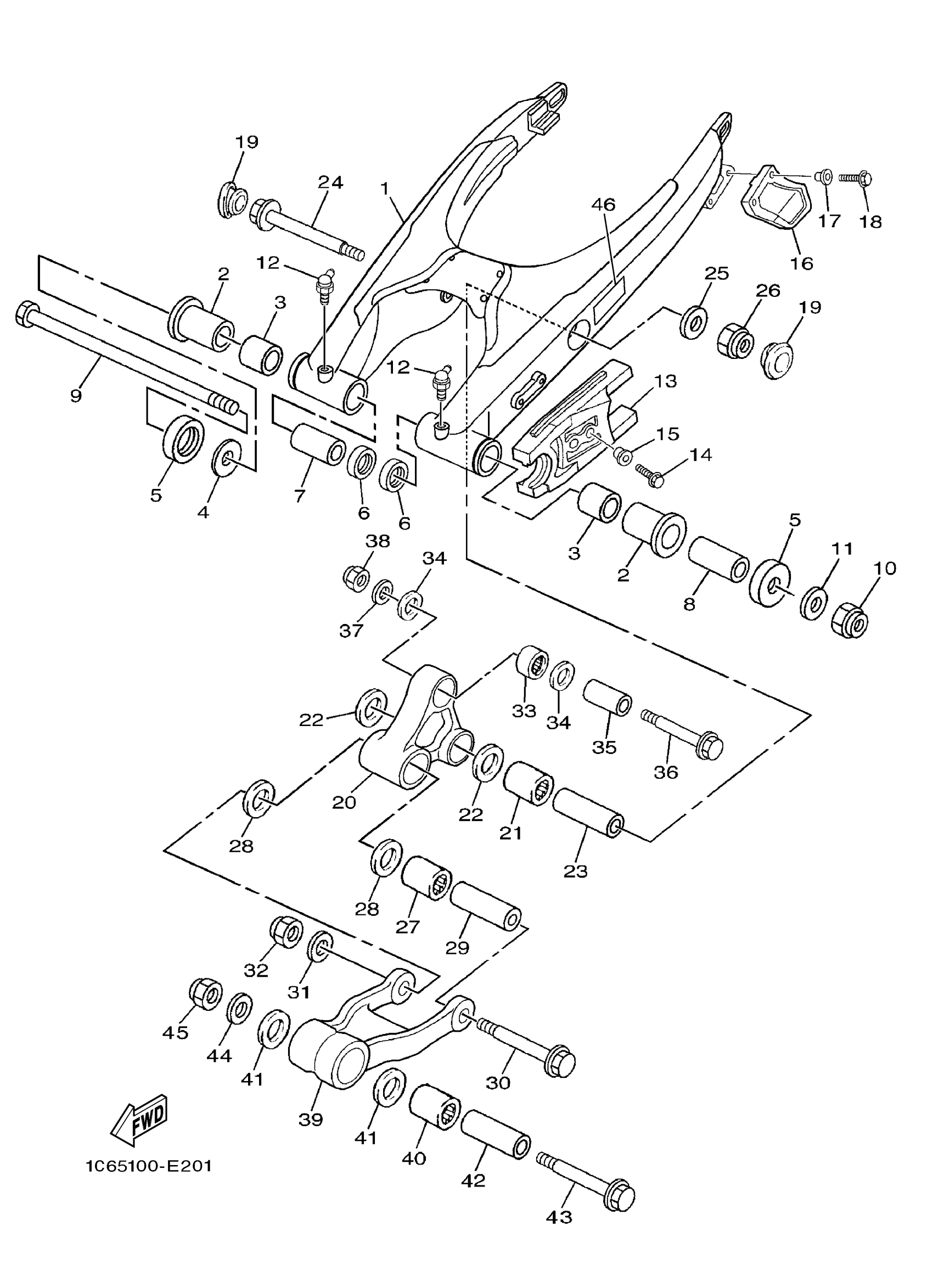 Yamaha TTR230D (TTR230) 1C6T 2013 REAR ARM Diagram