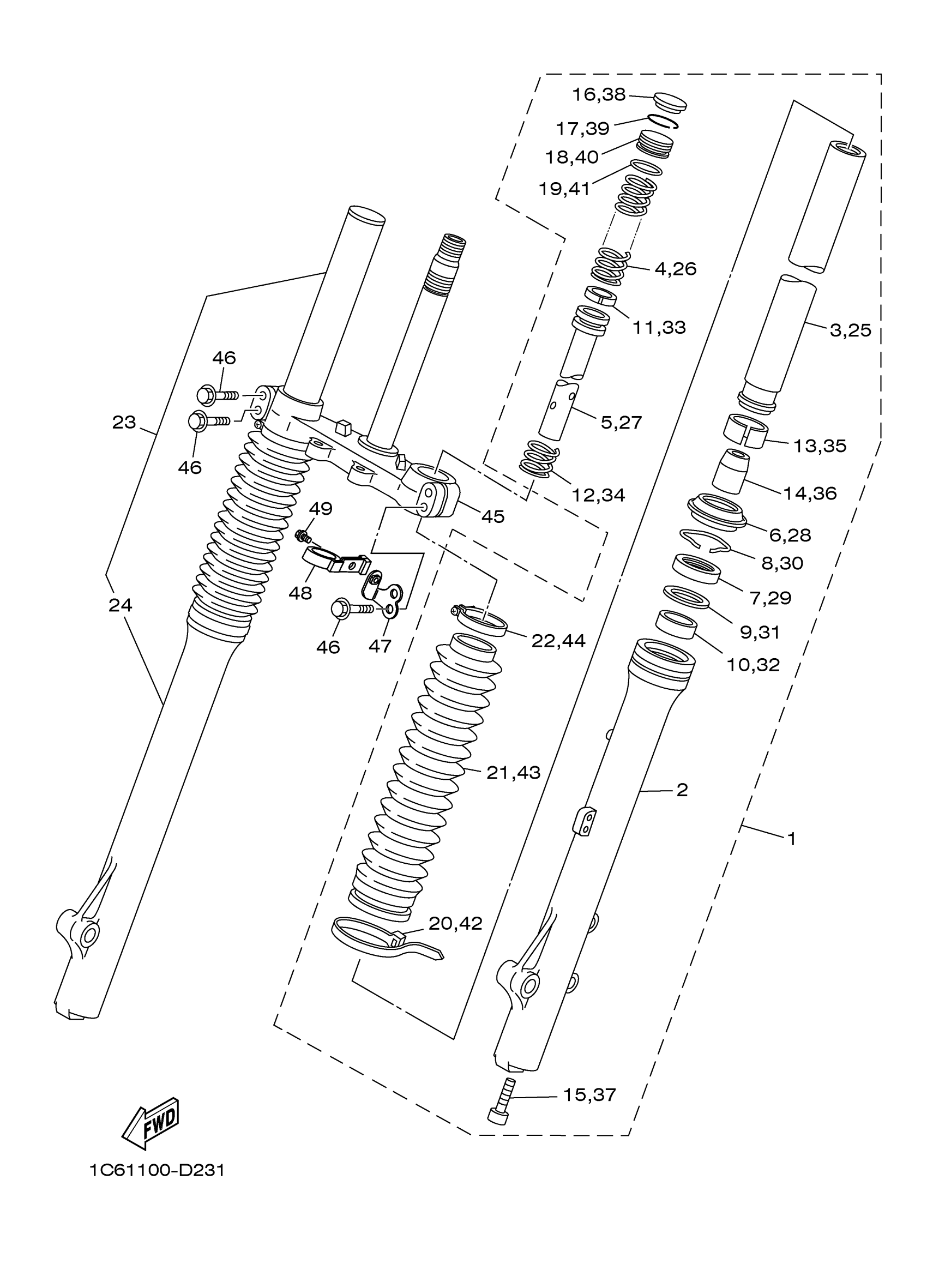 Yamaha TTR230RC (TTR230 CA) D212 2024 FRONT FORK Diagram