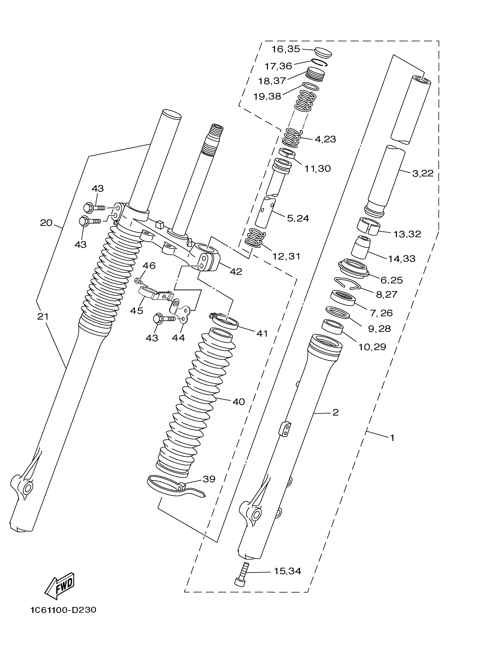 Yamaha TTR230W (TT-R230) 1C68 2007 FRONT FORK Diagram