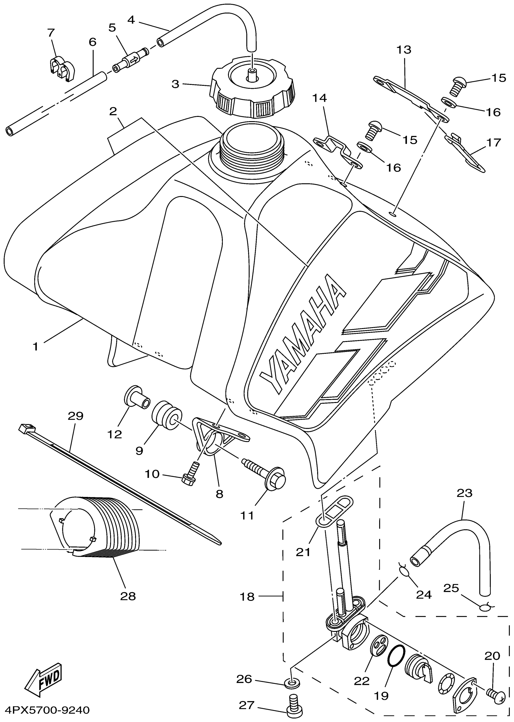 Yamaha TTR250LC (TTR250 CA) 5GF2 1999 FUEL TANK Diagram