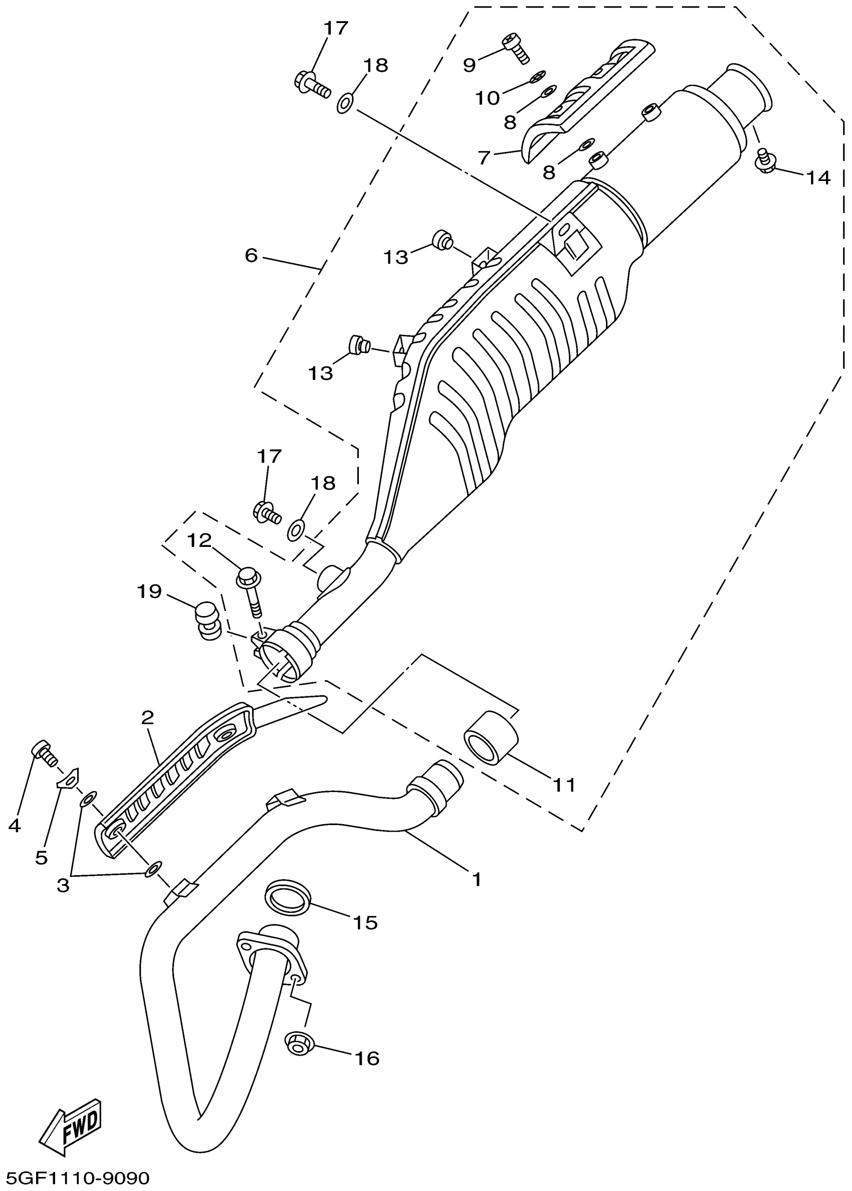 Yamaha TTR250NC (TTR250 CA) 5GF8 2001 EXHAUST Diagram