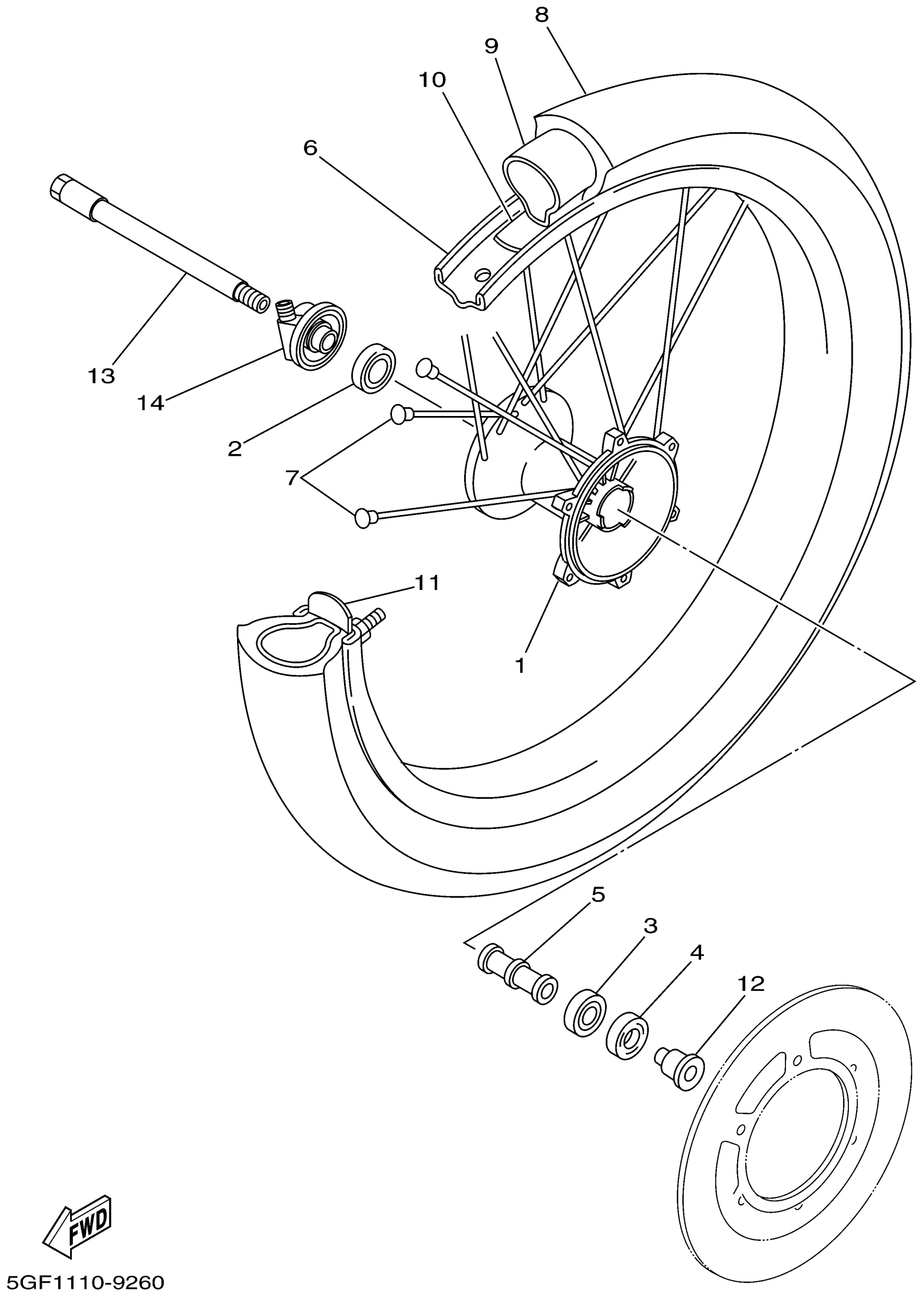 Yamaha TTR250NC (TTR250 CA) 5GF8 2001 FRONT WHEEL Diagram