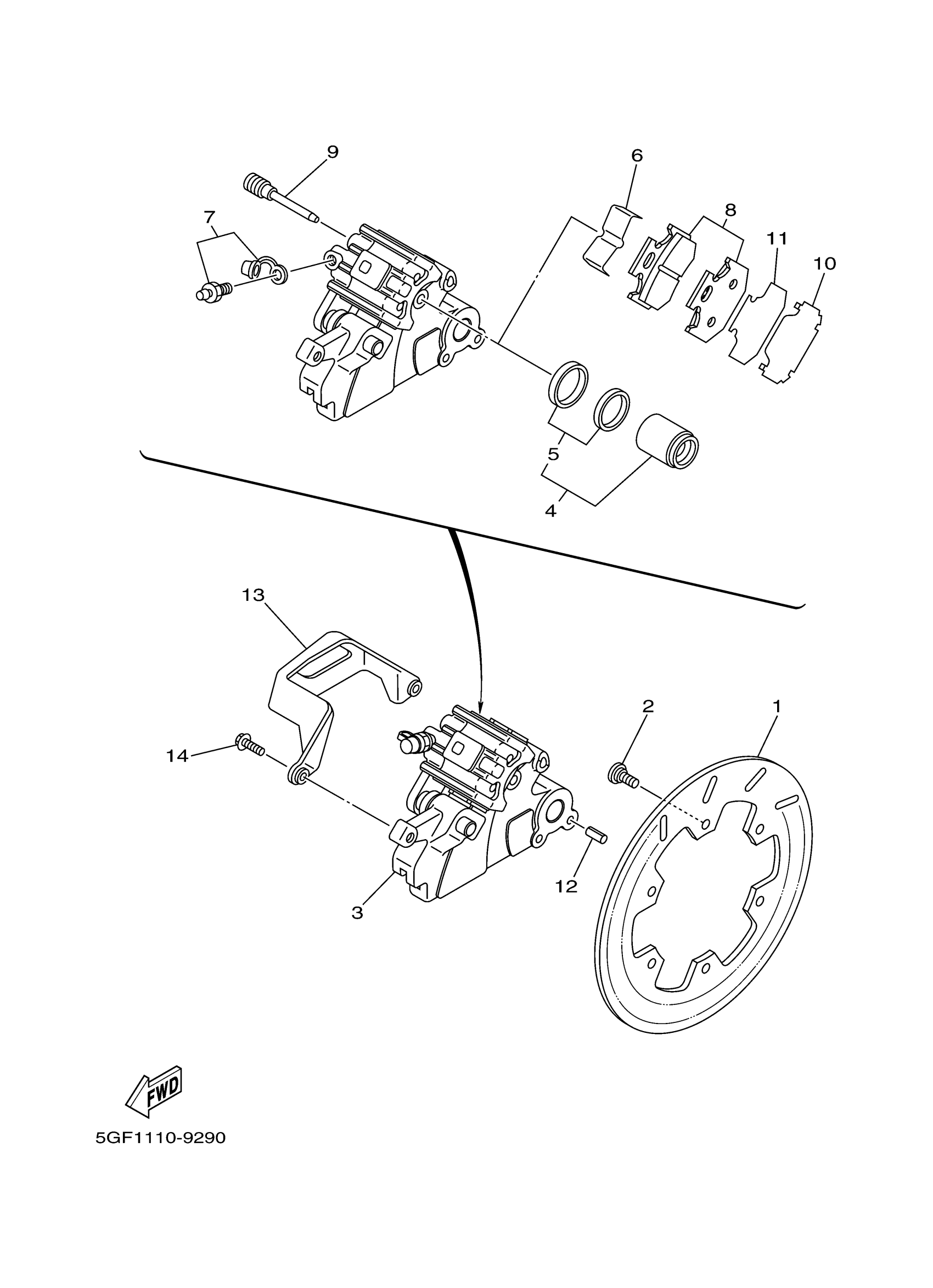 Yamaha TTR250VC (TT-R250 CA) 5GFP 2006 REAR BRAKE CALIPER Diagram