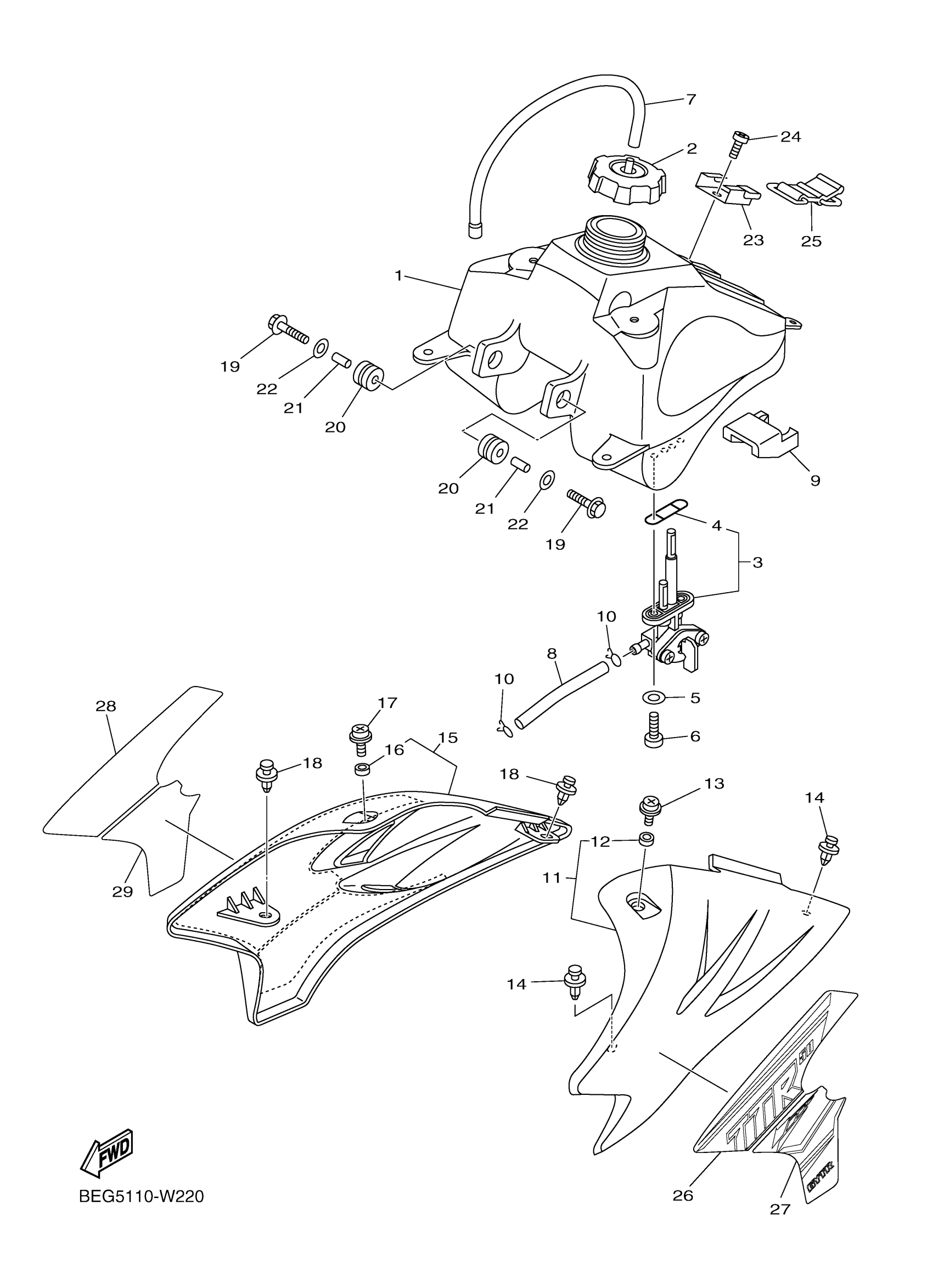 Yamaha TTR50EM (TTR50E) BEG5 2021 FUEL TANK Diagram