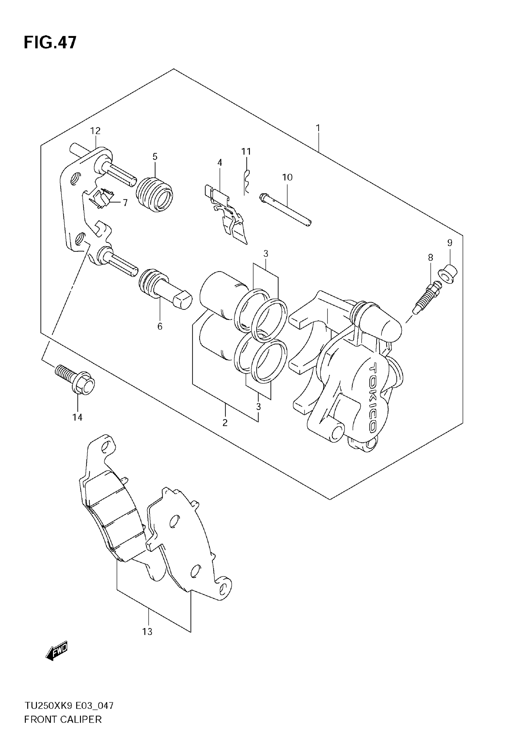 Suzuki TU250X (2009) FRONT CALIPER Diagram