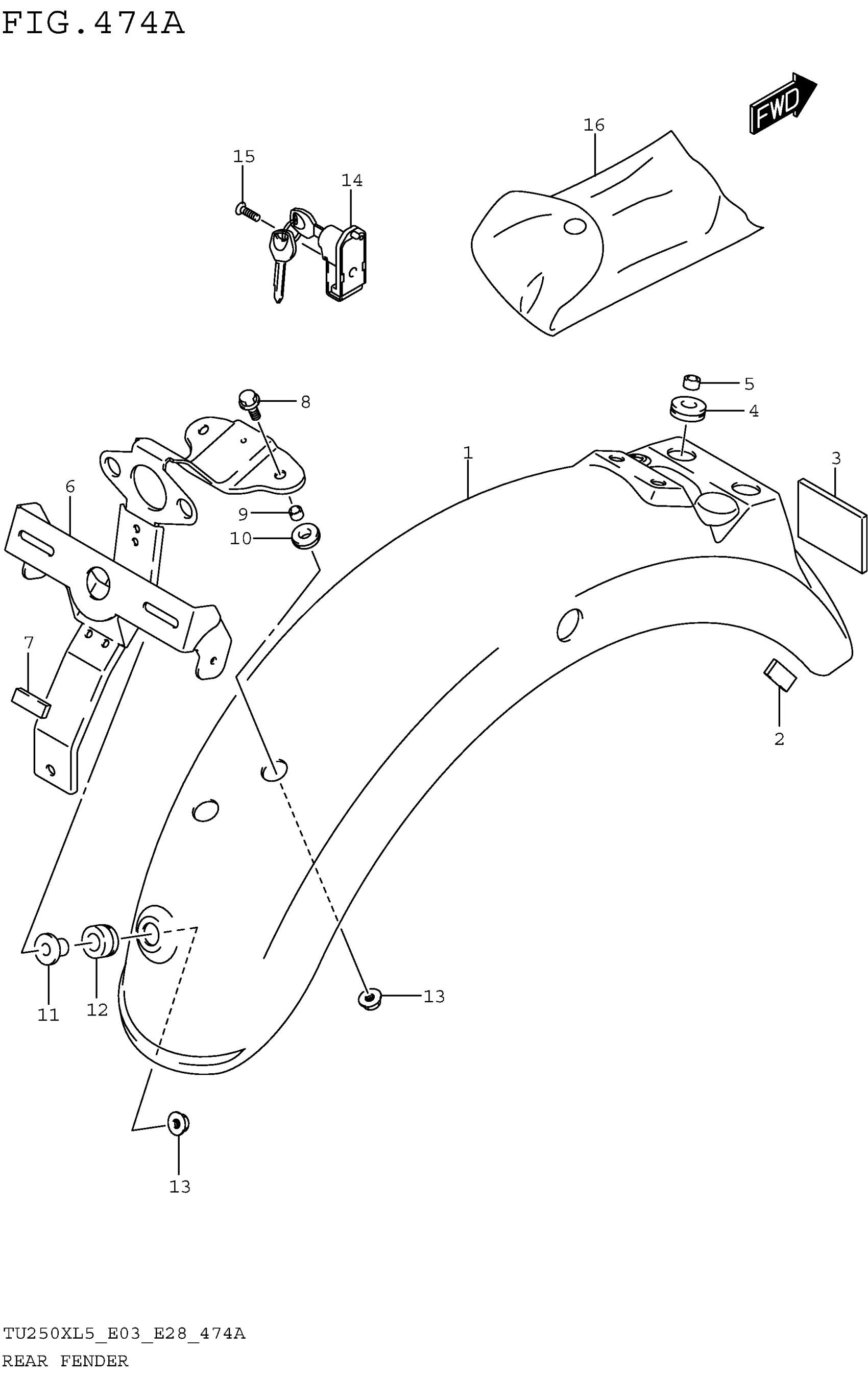 Suzuki TU250XL5 (2015) REAR FENDER Diagram