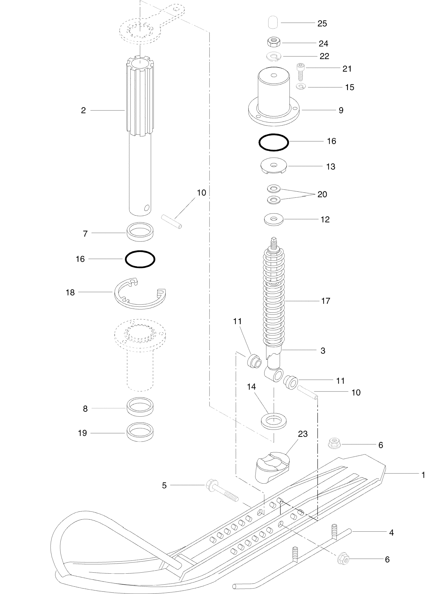 Ski-Doo Tundra II LT, 1996 Front Suspension And Ski Diagram