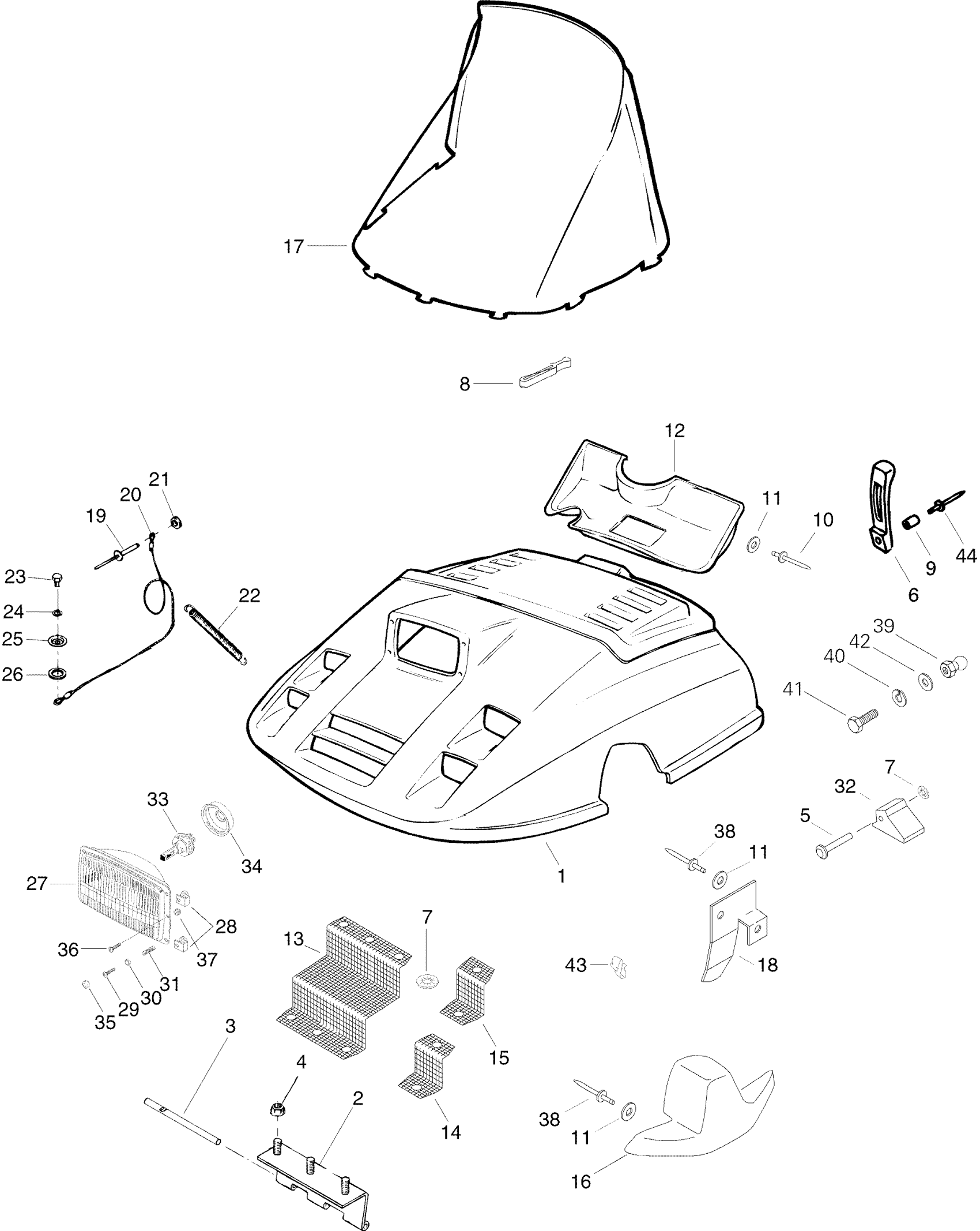 Ski-Doo Tundra II LT, 1996 Hood Diagram