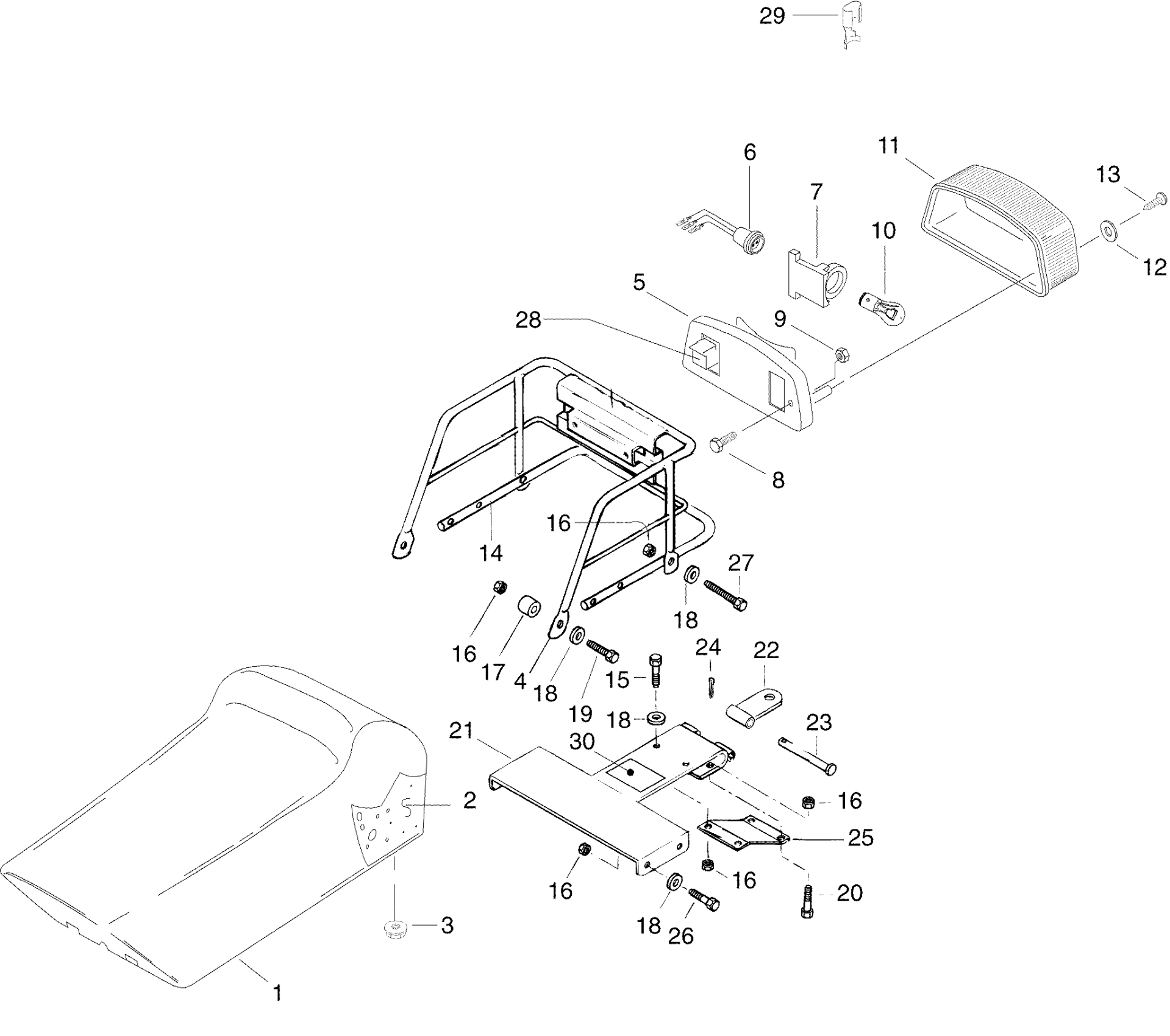 Ski-Doo Tundra II LT, 1996 Seat and Rack Diagram