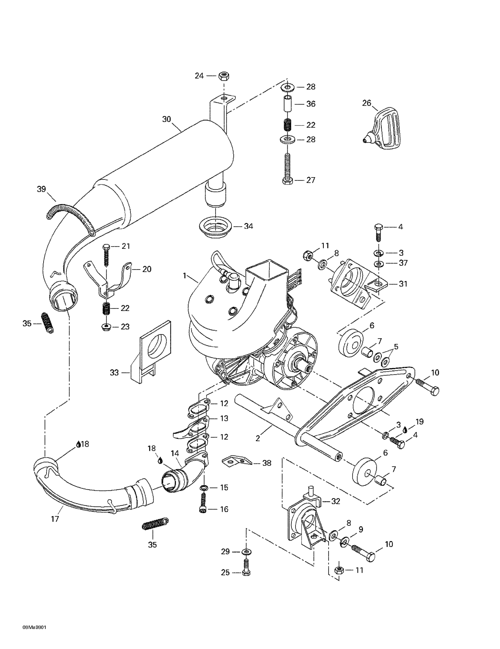 Ski-Doo Tundra II LT, 3270, 1998 Engine Support And Muffler Diagram
