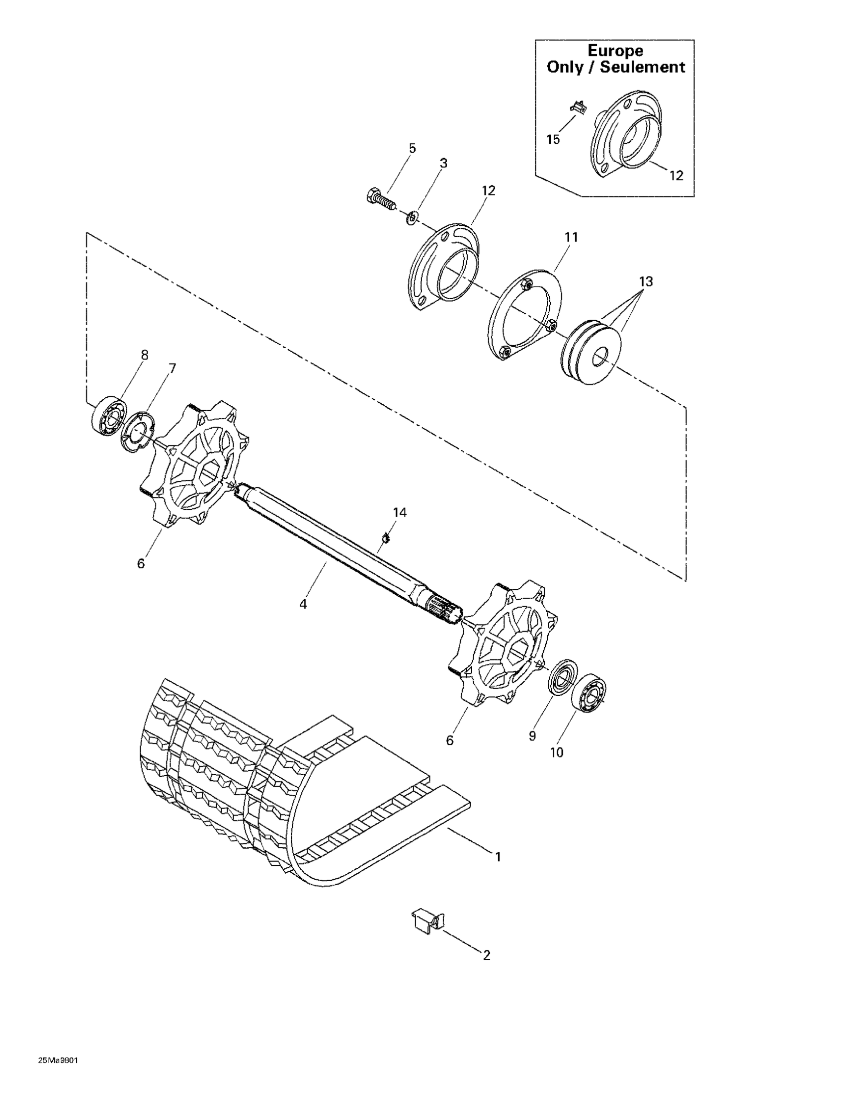 Ski-Doo Tundra II LT, 3270, 1998 Drive Axle And Track Diagram