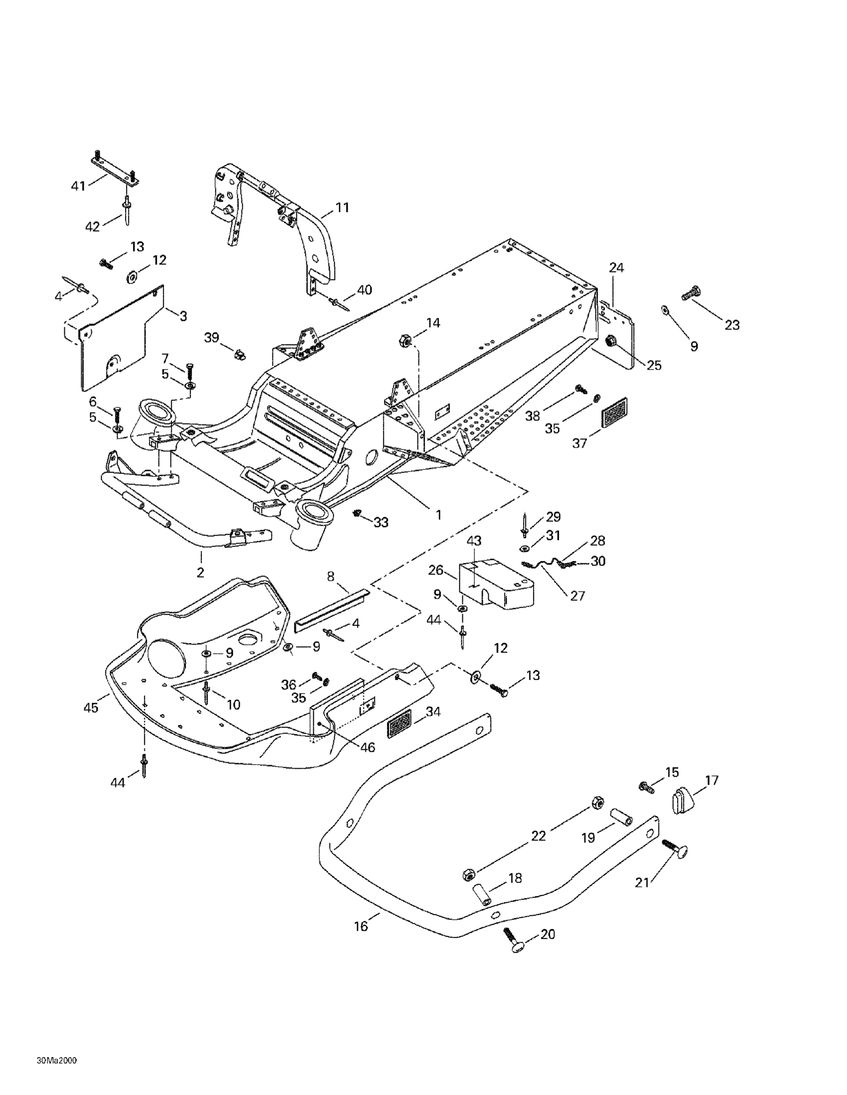 Ski-Doo Tundra R, 2000 Frame And Body 2 Diagram