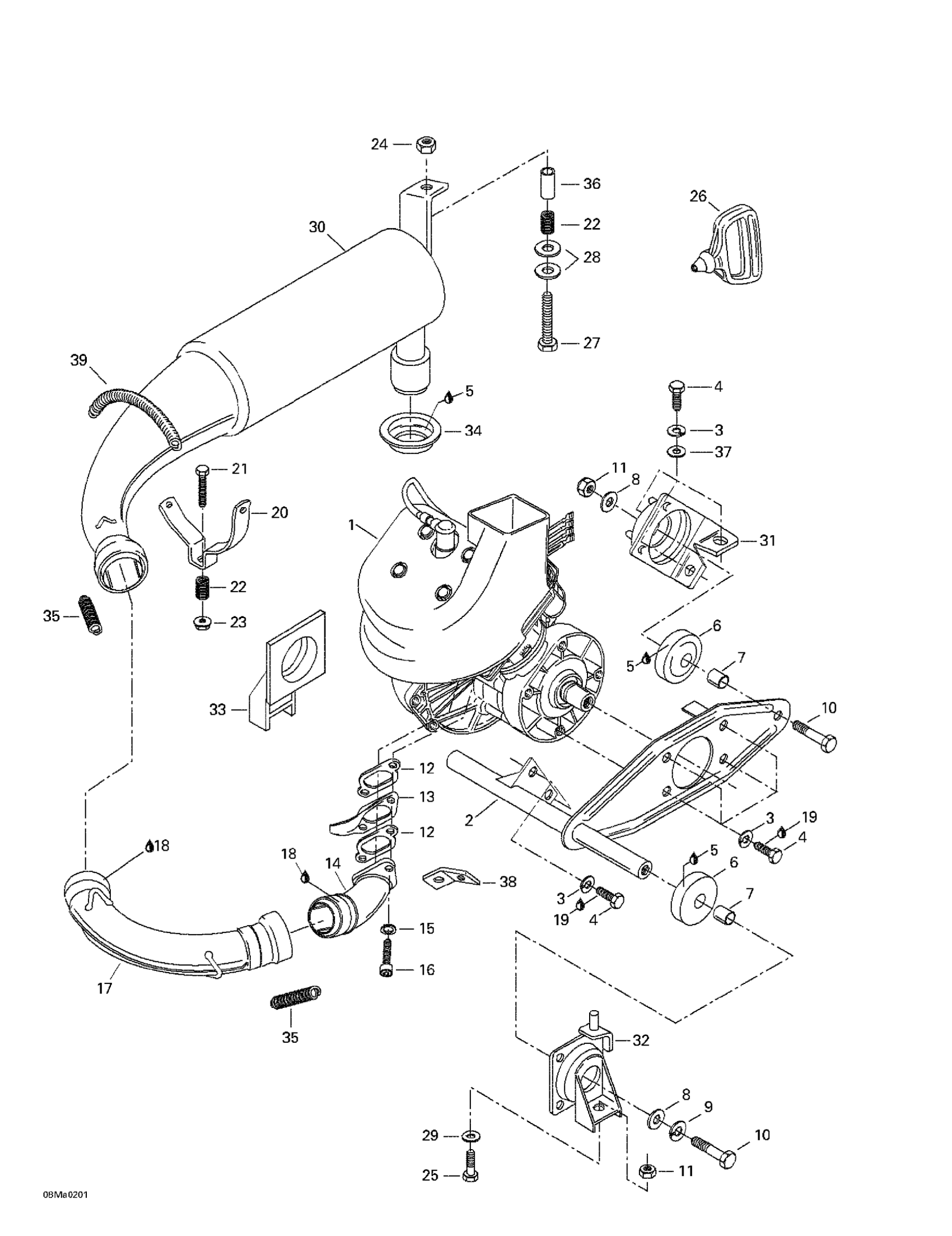 Ski-Doo Tundra R, 2002 Engine Support And Muffler Diagram