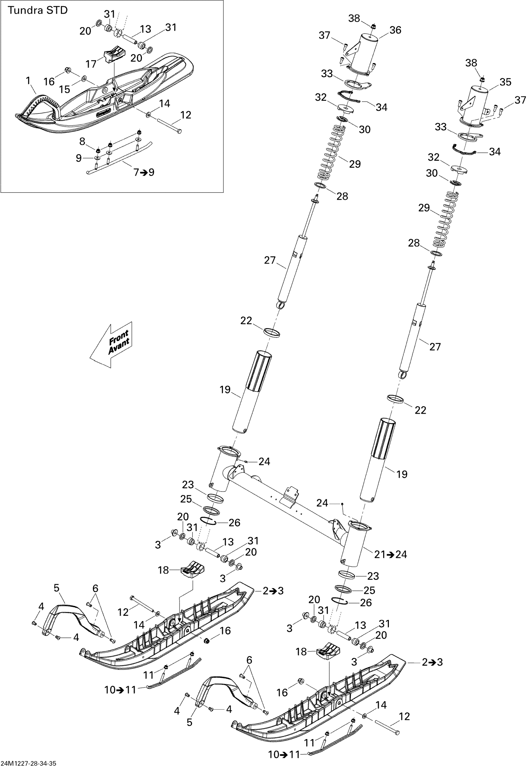 Ski-Doo Tundra Sport 600ACE LFF, 2012 Front Suspension And Ski Diagram
